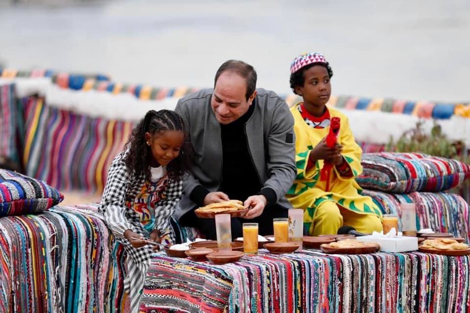 متحدث الرئاسة ينشر صور زيارة الرئيس السيسي لقرية غرب سهيل في أسوان
