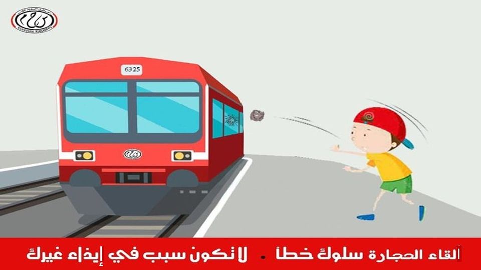 النقل تناشد المواطنين المشاركة في التوعية من مخاطر رشق الأطفال للقطارات بالحجارة