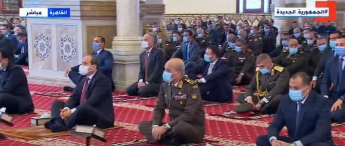 وأدى الصلاة مع الرئيس السيسي، كل من الدكتور مصطفى مدبولي رئيس مجلس الوزراء، والفريق أول محمد زكي القائد العام للقوات المسلحة وزير الدفاع والإنتاج الحربي، والفريق أسامة عسكر رئيس أركان حرب القوات المسلحة، والمستشار عمر مروان وزير العدل، بالإضافة إلى وزير الأوقاف الدكتور محمد مختار جمعة، والدكتور شوقي علام مفتي الجمهورية، ووزير الداخلية اللواء محمود توفيق، واللواء محمود شعراوي وزير التنمية المحلية، المهندس محمد أحمد مرسي وزير الدولة للإنتاج الحربي، ومحافظ القاهرة خالد عبدالعال، وقادة الأفرع الرئيسية وكبار قادة القوات المسلحة وعددا من الضباط وضباط الصف والجنود.