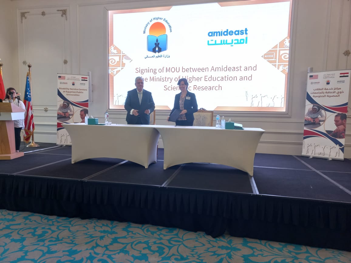 وقع الدكتور أيمن عاشور نائب الوزير لشئون الجامعات، اليوم السبت، برتوكول تعاون بين وزارة التعليم العالي والبحث العلمي و15 جامعة حكومية من جانب، ومنظمة أمديست الأمريكية من جانب آخر؛ لإنشاء مراكز لخدمة ودعم ذوي الهمم بالجامعات المصرية خلال العامين القادمين، ووقع البرتوكول عن أمديست د. كوينسي ديرمودي مدير برنامج منح الجامعات الحكومية بـ "أمديست"، وذلك بحضور رؤساء الجامعات الخمس عشرة، ومُمثلي منظمة أمديست والوكالة الأمريكية للتنمية الدولية ووزارة التعليم العالي ود. عادل عبدالغفار المُستشار الإعلامي والمُتحدث الرسمي للوزارة.