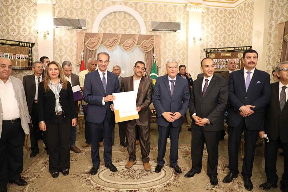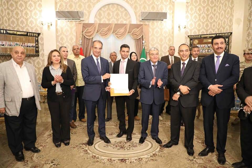 وسلم وزير الاتصالات ومحافظ المنيا الشهادات لعدد من خريجي البرامج التدريبية والمقدمة من وزارة الاتصالات من العاملين بالجهاز الإداري للدولة والتي تضم برنامج الإدارة الرقمية للمشروعات - حياة كريمة، وكذلك برنامج الألياف الضوئية.