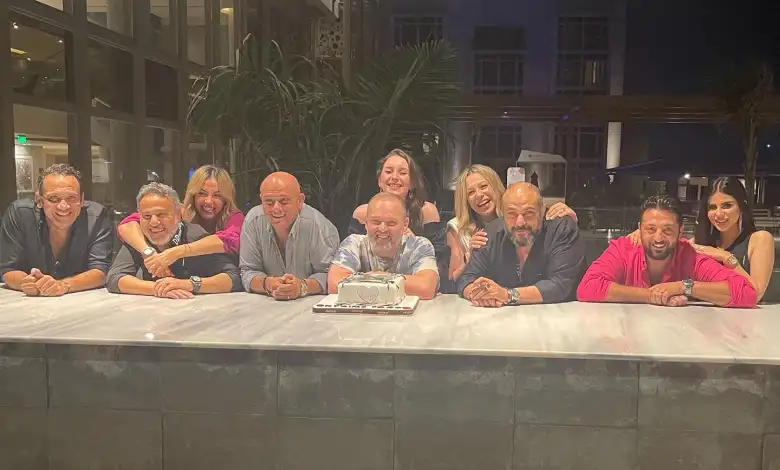 ونشر الفنان محمد محمود عبد العزيز، كواليس احتفال زوجته وأصدقائه المقربين بقيادة المنتج السينمائي، ريمون مقار وحضور الفنان كريم عبد العزيز.