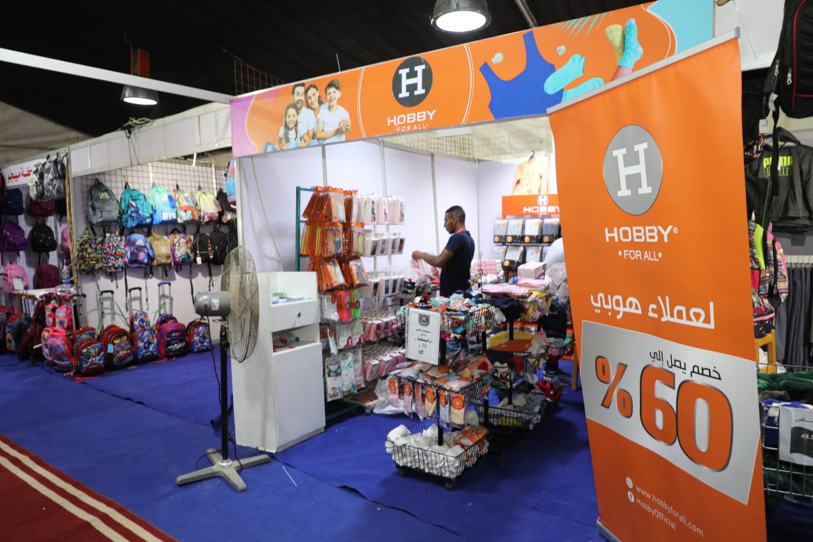 ويضم المعرض مستلزمات المدارس والجامعات من الأدوات المكتبية والحقائب والملابس والاحذية ويتم البيع بسعر المصنع.