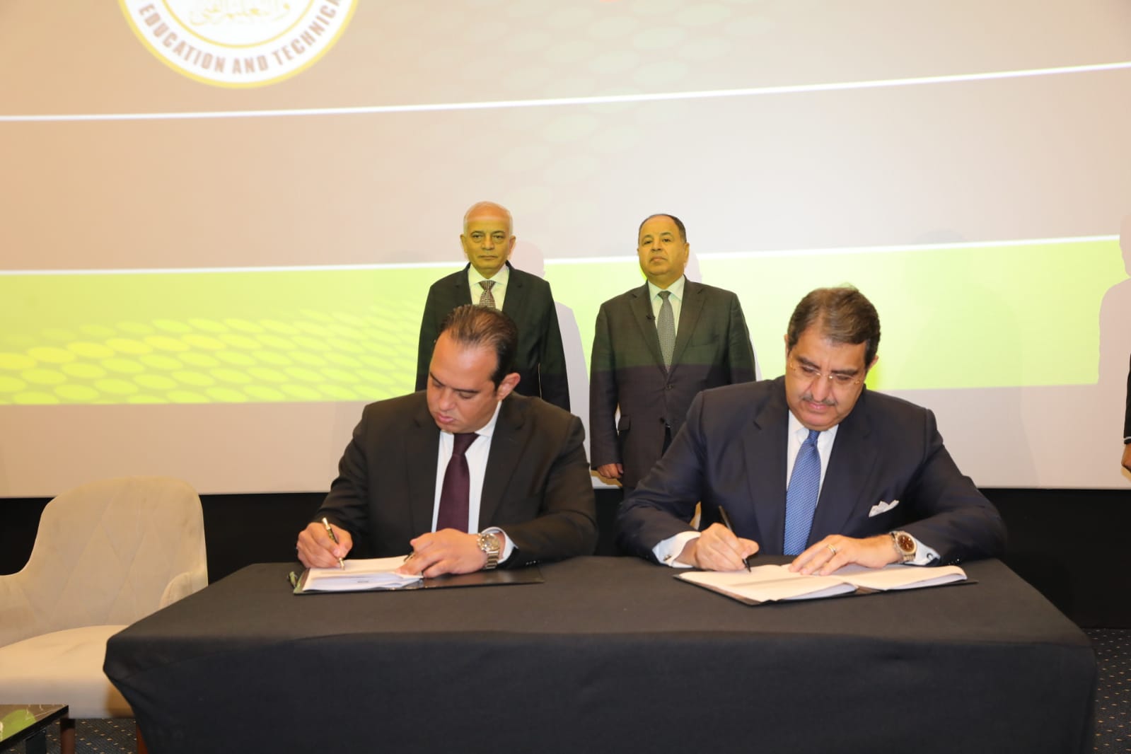 وقع البروتوكول الدكتور أحمد ضاهر نائب الوزير للتطوير التكنولوجي، والمهندس إبراهيم سرحان رئيس مجلس إدارة شركة إي فاينانس للاستثمارات المالية والرقمية.