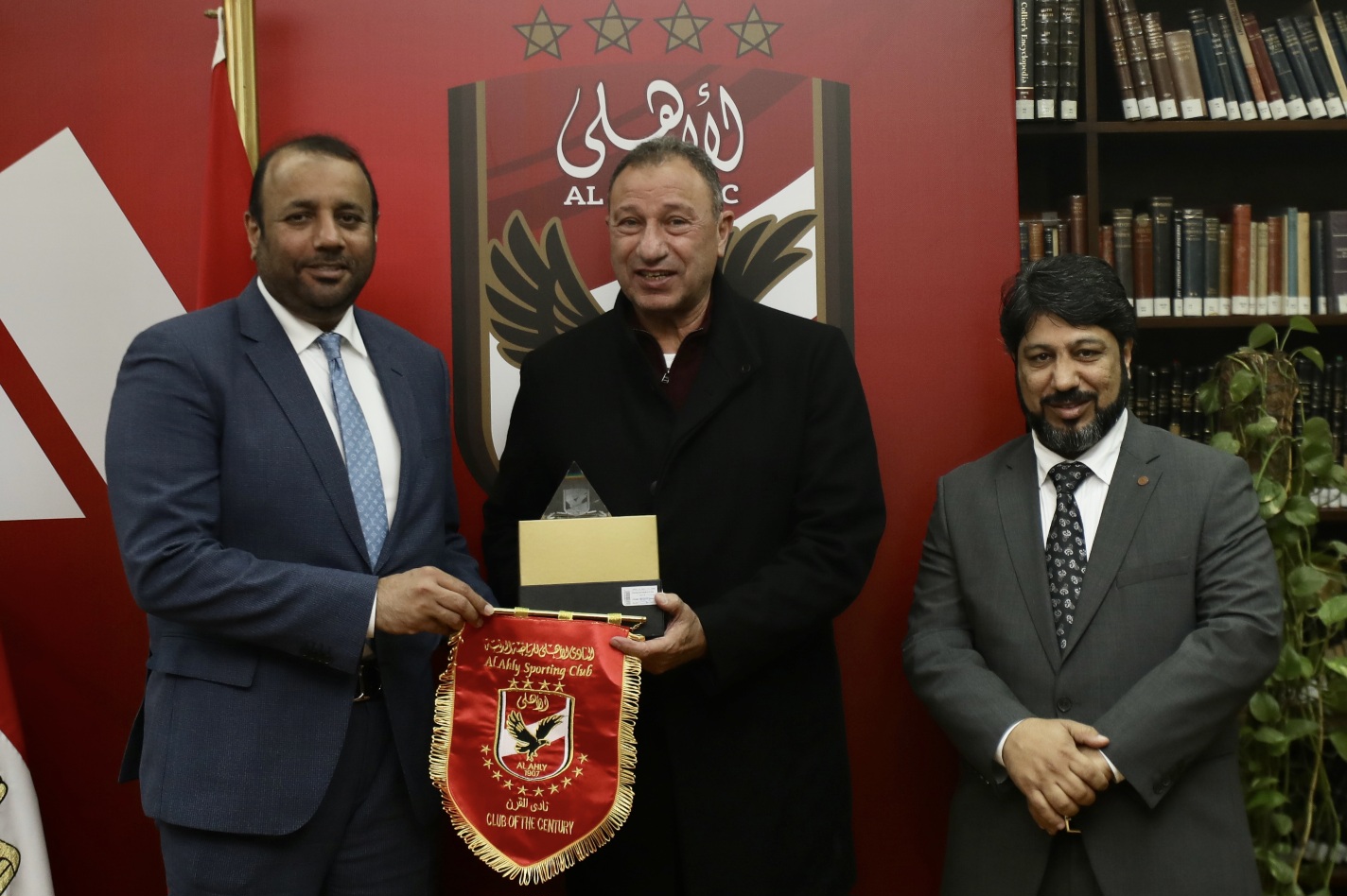 وقام رئيس الأهلي بإهداء الحزامي درع وعلم وقميص النادي في نهاية الزيارة، والتقاط الصور التذكارية معه والوفد المرافق له.