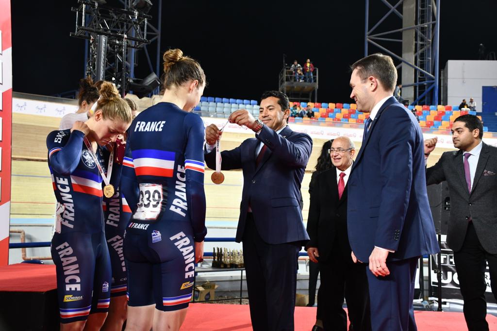 قام وزير الرياضة ورئيس الاتحاد الدولى للدراجات بتتويج الفائزين ببطولة كأس الأمم لدراجات المضمار على مستوى سباقات المطاردة للسيدات حيث حصل على المركز الأول فريق فرنسا، والمركز الثانى فريق نيوزيلاندا ، والمركز الثالث فريق المانيا، وكذا الفائزين فى سباق المطاردة للرجال المركز الأول الدنمارك، والمركز الثانى لفرنسا، والمركز الثالث لألمانيا.