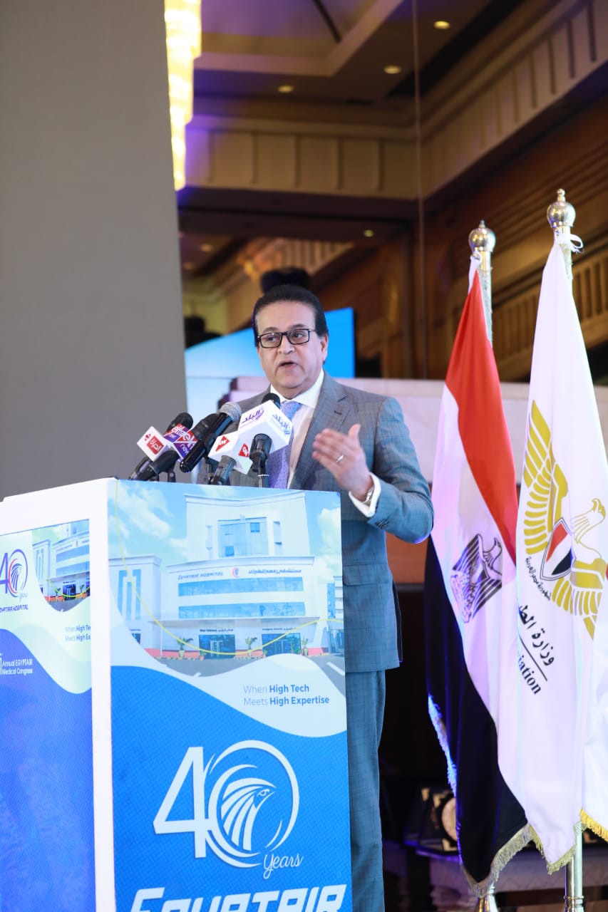 جاءت كلمة وزير الصحة والسكان، خلال مشاركته بفعاليات افتتاح المؤتمر الطبي الأول لمستشفى مصر للطيران للخدمات الطبية، بمناسبة مرور 40 عامًا على إنشاء المستشفى، والذي تنظمه مستشفى مصر للطيران، تحت شعار «خدمات طبية لحياة أفضل»، برعاية الفريق محمد عباس حلمي، وزير الطيران المدني، وحضور الدكتور أيمن عاشور، وزير التعليم العالي والبحث العلمي، والدكتور محمود المتيني، رئيس جامعة عين شمس، وعددًا من أساتذة الطب بالجامعات المصرية، وبعض الكوادر الطبية البارزة بمختلف التخصصات الطبية، وذلك لمناقشة أحدث ما توصل إليه العلم في مختلف التخصصات الطبية.