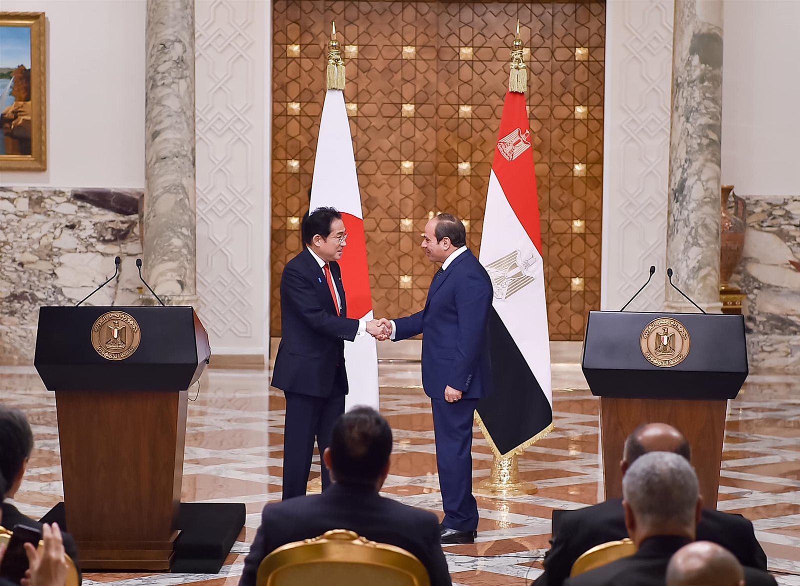 وصرح المستشار أحمد فهمي، المتحدث الرسمي باسم رئاسة الجمهورية، بأن مباحثات القمة المصرية اليابانية شهدت الاتفاق على ترفيع العلاقات بين مصر واليابان إلى مستوى الشراكة الاستراتيجية، كتتويج لمسيرة ممتدة من العلاقات التاريخية المتجددة بين البلدين الصديقين.