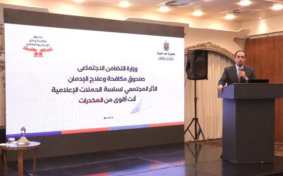واستعرض، الأثر المجتمعي لسلسلة الحملات الإعلامية للصندوق "أنت أقوى من المخدرات "، لافتًا إلى أن فلسفة الحملة قائمة على التوعية بخطورة مشكلة تعاطي وإدمان المواد المخدرة، والقدرة على التأثير وتفنيد المفاهيم المغلوطة المنتشرة حول المشكلة والتنوع في الفئات المستهدفة، كذلك التنوع في محتوى الحملة والمشاركين فيها، وخلال مراحل الحملة السابقة استهدفت الشباب والمراهقين "شباب وفتيات"، كذلك تعريف الاسر بآليات الاكتشاف المبكر للتعاطي وكيفية العلاج من الإدمان من خلال الخط الساخن "13023"، كما ساهمت في زيادة الطلب على العلاج من الإدمان 400% من خلال الخط الساخن، وشاهدها ما يقرب من "185 مليون مشاهد" بشكل تراكمي على مدار الـ6 سنوات الماضية.