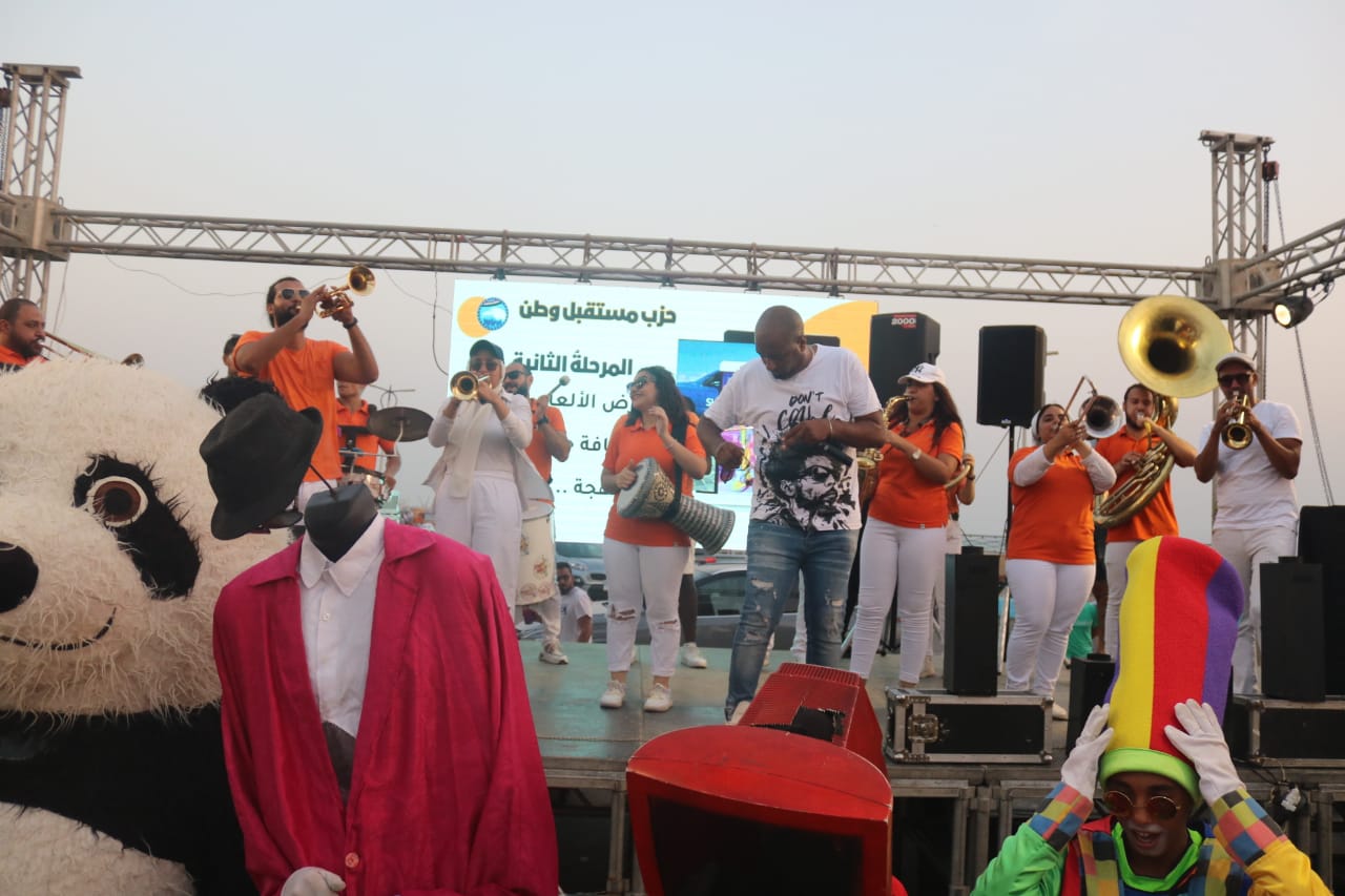 وانتهى الموكب بالوصول إلى مكان المهرجان بمنطقة الباركنيج بالكورنيش والذي شهد عرض من أحد الفرق الموسيقية بمشاركة 15 عازف مع عزف على آلات موسيقية على مسرح المخصص بمنطقة المهرجان على استعراض مهارات من طلبه أكاديمية الإسكيت واستعراض فرق الفنون الشعبية.
