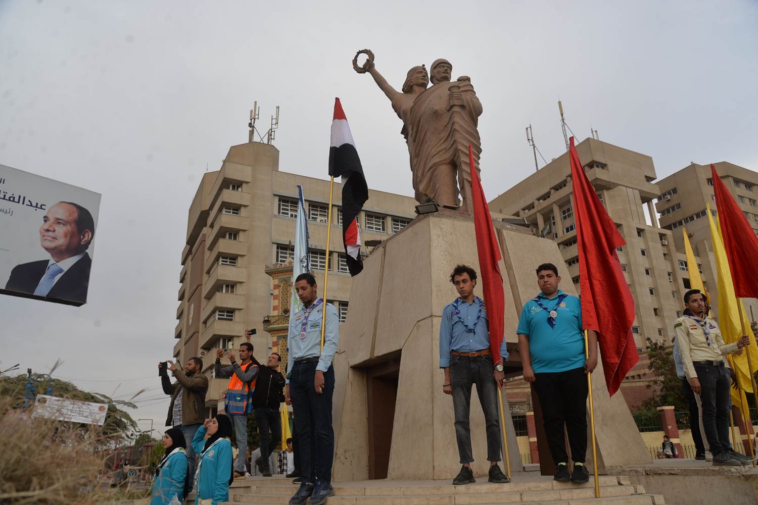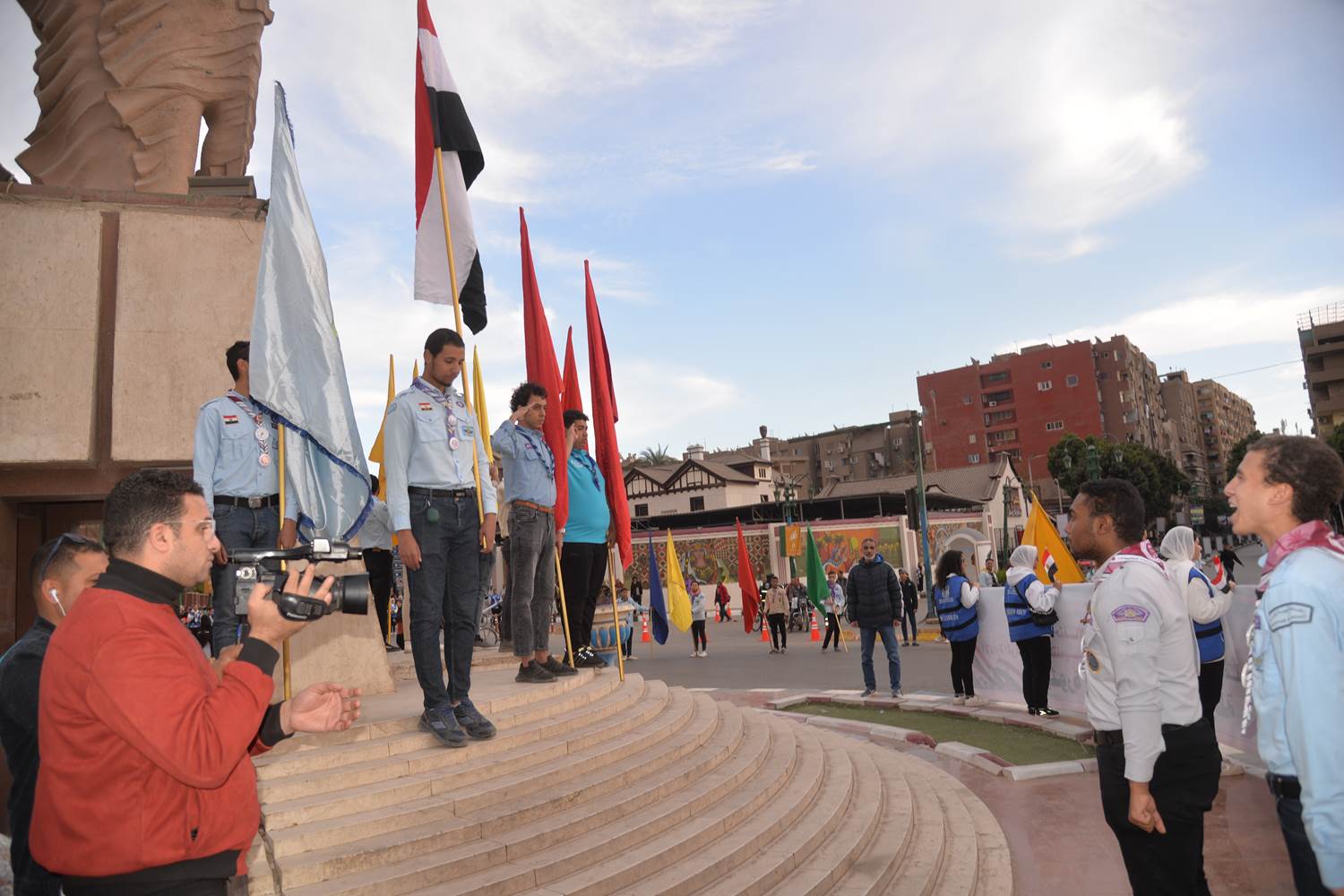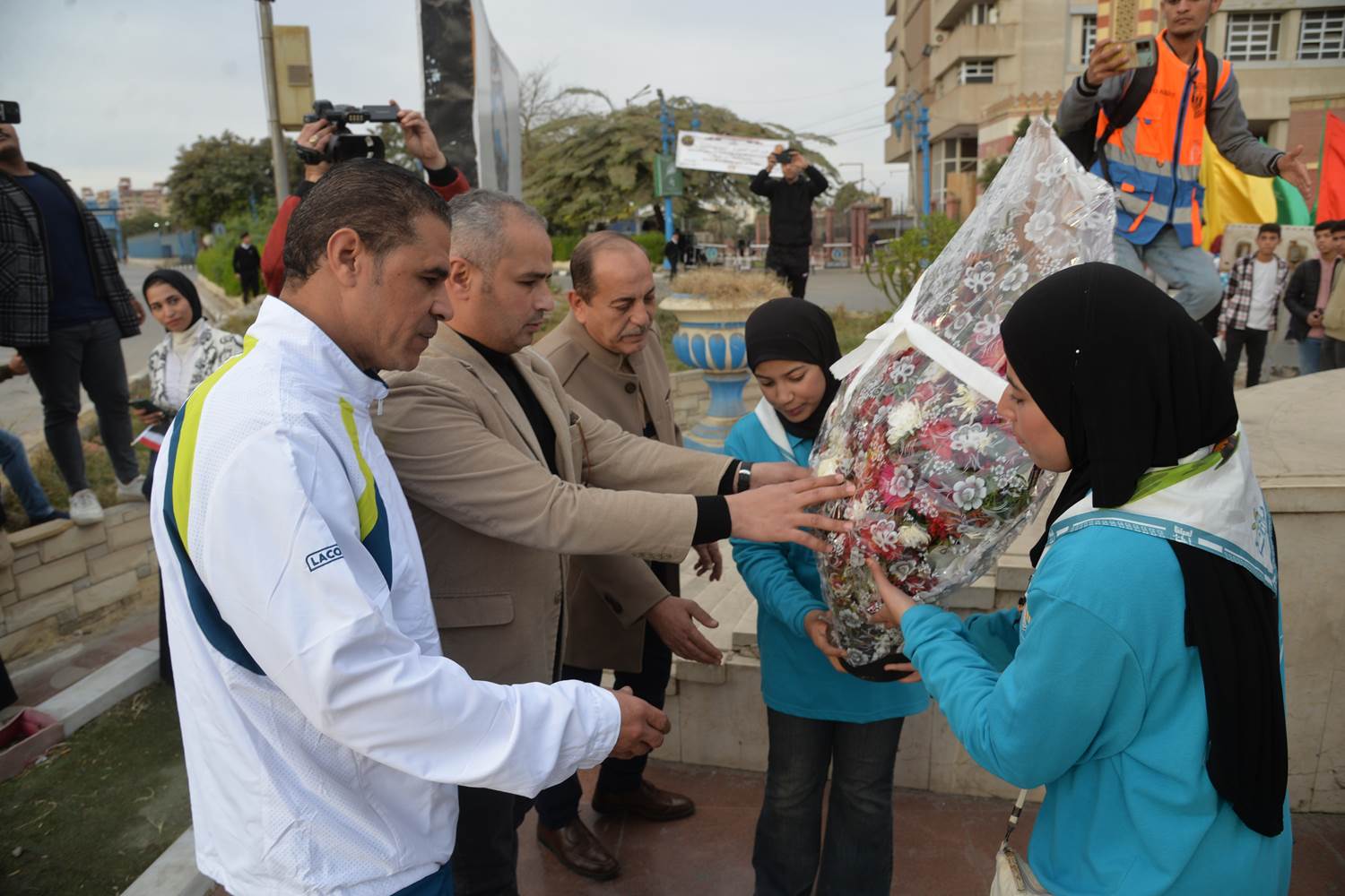 وتقدم نائب المحافظ يرافقه أحمد سويفي مدير مديرية الشباب والرياضة بأسيوط، وعادل فؤاد وكيل مديرية الشباب والرياضة، وأحمد مدير إدارة برلمان الطلائع وعدد من قيادات المحافظة والشباب والرياضة الماراثون الذي انطلق من أمام ديوان عام المحافظة مرورًا بشارع الثورة وحتى ميدان الحرب والسلام العام وتعالت الأغاني الوطنية ورفع الشباب والأطفال المشاركين في الماراثون الأعلام وصور الرئيس عبدالفتاح السيسي رئيس الجمهورية بعدها تم وضع اكليل من الزهور على النصب التذكاري للجندي المجهول بميدان الحرب والسلام وقراءة الفاتحة على أرواح الشهداء وعزف سلام الشهيد وتحية العلم والسلام الوطني لجمهورية مصر العربية.