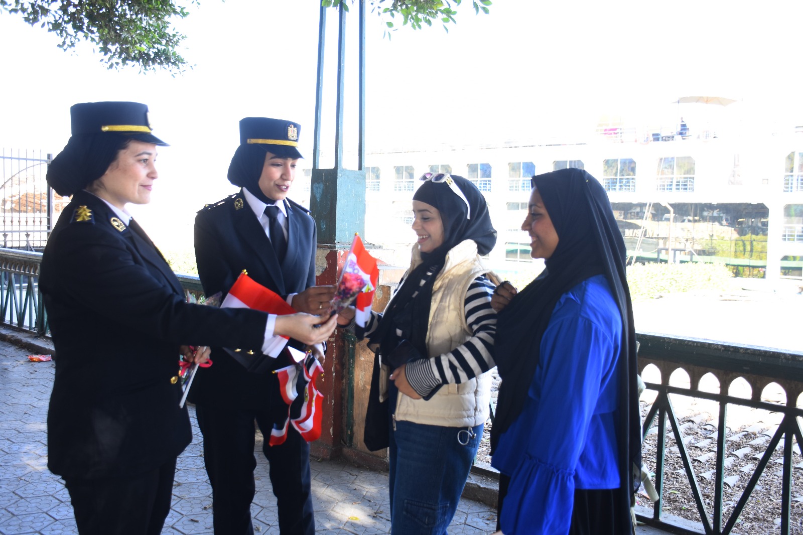 بتوزيع الورود والهدايا.. رجال الداخلية يواصلون الاحتفال مع المواطنين والسائحين بعيد الشرطة