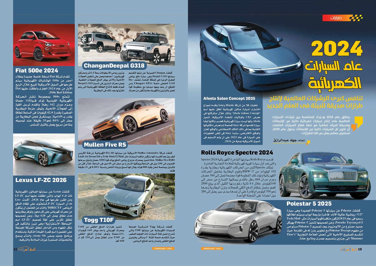 كما ضم العدد مجموعة من التقارير منها حماية المستهلك يضرب بيد من حديد، «أخبار السيارات» تختبر أيقونة السيارات الكهربائية TESLA MODEL X، اتفاق تاريخي لتسوية مديونيات الصحف القومية للتأمينات، 2024 عام السيارات الكهربائية، الانطلاقة لن تتوقف، شاحنات 2024 الكهربائية.. قوة وسرعة وأداء، سيارات 2025 الكهربائية الجديدة، مفاوضات سيارة «النصر» تقترب من محطتها الأخيرة، موتوسيكلات العام الجديد صديقة للبيئة وبتصميمات عصرية، رالي موتورز جروب أكبر مركز خدمة وموزع معتمد للسيارات الكهربائية، تطبيق لصيانة السيارات باستثمارات 100 مليون جنيه.