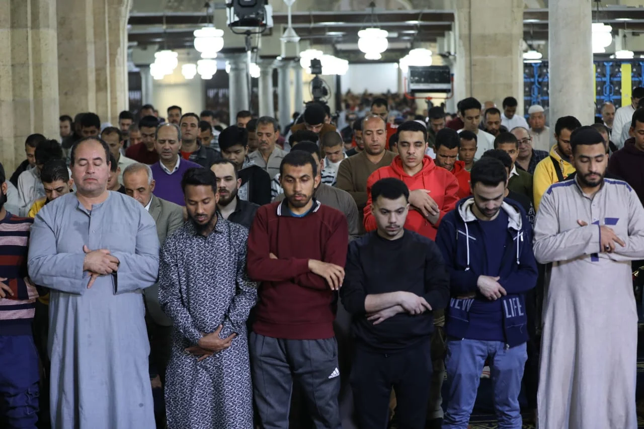 وتقدم المصلين فضيلة الدكتور نظير عياد، الأمين العام لمجمع البحوث الإسلامية، والدكتور عبد المنعم فؤاد، المشرف العام على الأنشطة العلمية بالجامع الأزهر، والدكتور هاني عودة، مدير عام الجامع الأزهر، وجمعٌ من علماء الأزهر، وتقام صلاة العشاء الليلة من سورة الفرقان برواية حفص عن عاصم، وتقام صلاة التراويح من سورتى الفرقان والشعراء، برواية خلف العاشر، وورش عن نافع المدنى، ورويس عن يعقوب الحضرمى.