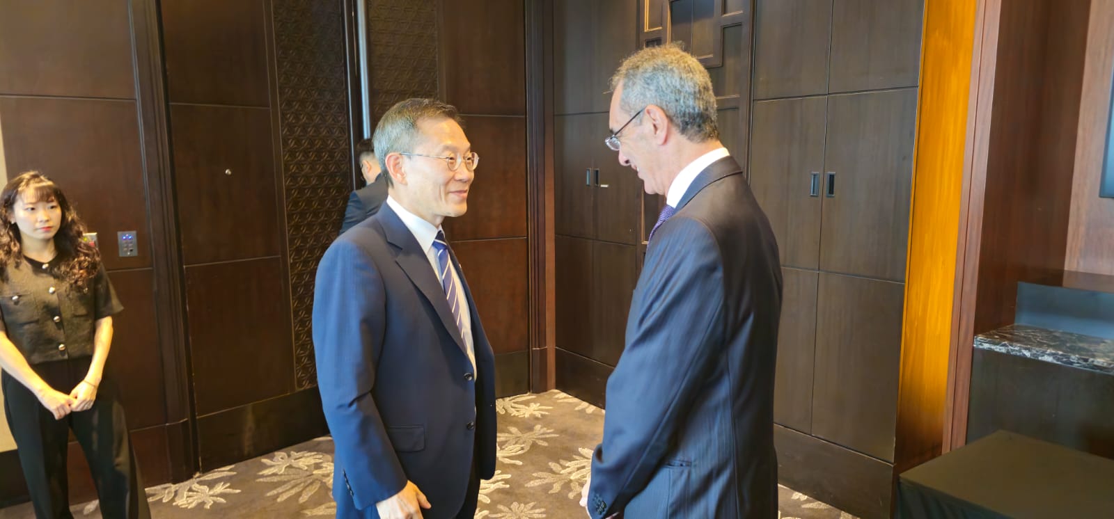 بحث الدكتور عمرو طلعت وزير الاتصالات وتكنولوجيا المعلومات مع الدكتور لي جونغ هو وزير العلوم وتكنولوجيا المعلومات بجمهورية كوريا فتح آفاق جديدة للتعاون بين مصر وجمهورية كوريا في مجالات الرقائق الالكترونية، والذكاء الاصطناعي، وذلك بحضور خالد عبد الرحمن سفير مصر لدى جمهورية كوريا، وذلك على هامش فعاليات المنتدى العالمي العاشر لقادة تكنولوجيا المعلومات والاتصالات الذي تستضيفه العاصمة الكورية سيول.