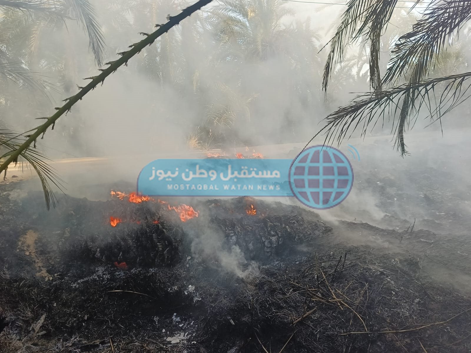 تبين نشوب حريق كبير في مزرعة نخيل وملحقاتها بقرية " تنيدة " التابعة لمركز بلاط وجرى الدفع بـ4 سيارات إطفاء ومياه للسيطرة على الحريق.