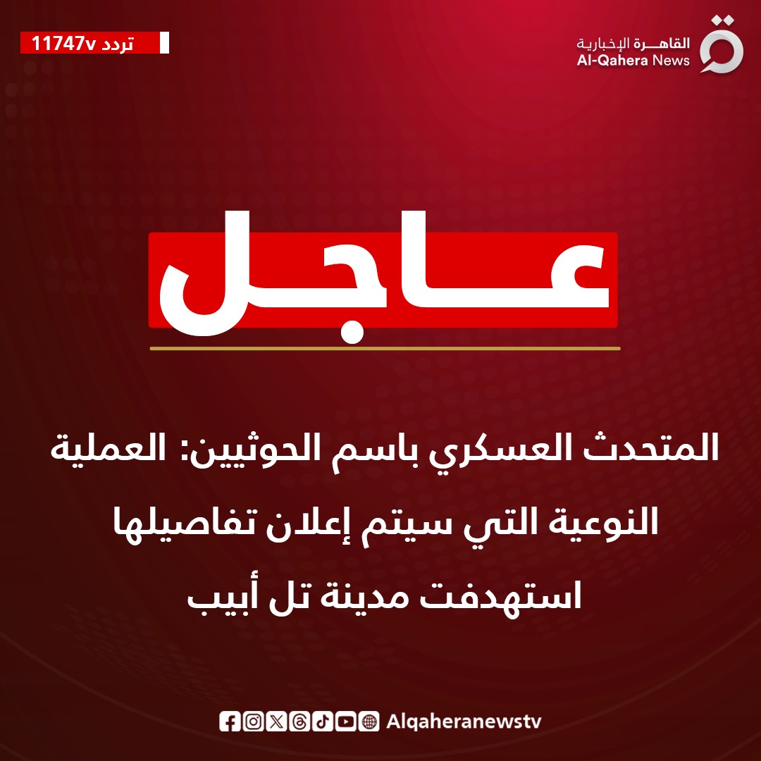 قال المتحدث العسكري باسم الحوثيين إن العملية النوعية التي سيتم إعلان ت فاصيلها، استهدفت مدينة تل أبيب، حسبما أفادت قناة القاهرة الإخبارية، في نبأ عاجل، منذ قليل.
