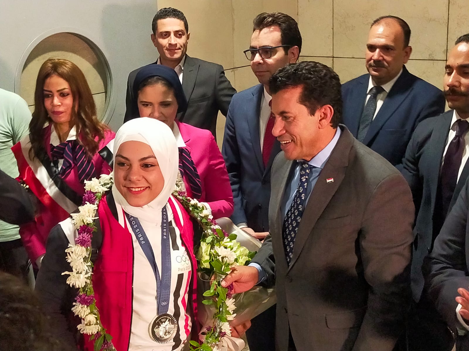 استقبل الدكتور اشرف صبحي وزير الشباب والرياضة بمطار القاهرة الدولي أبطال مصر الحاصلين على الميداليات الأوليمبية وذلك ضمن منافسات دورة الألعاب الأوليمبية باريس 2024 أحمد الجندي لاعب المنتخب المصري للخماسي الحديث والحاصل على الميدالية الذهبية وسارة سمير الحاصلة على الميدالية الفضية وكذلك جميع اللاعبين القادمين عقب انتهاء منافسات الدورة الأوليمبية.