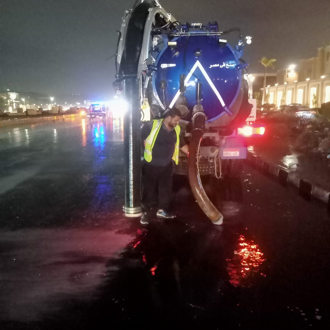 فيما تعاملت معدات شركة مياه الجيزة مع تجمعات مياه الأمطار بمناطق: طريق مصر إسكندرية الصحراوي وإمبابة وكورنيش النيل ومنشأة القناطر وأوسيم وأبو رواش.
