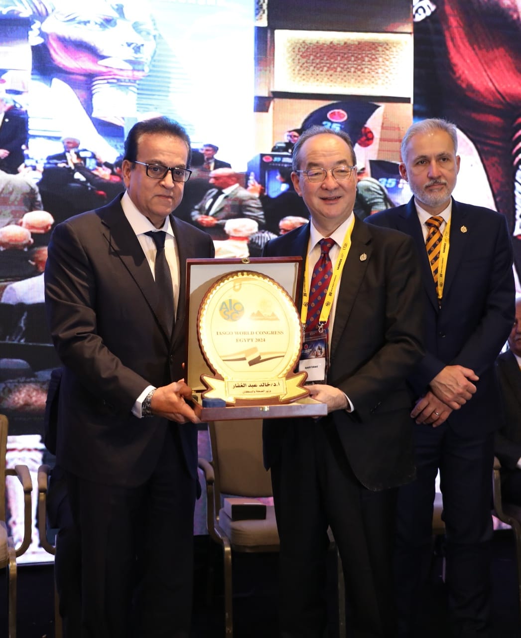 وفي ختام الجلسة الافتتاحية، تم تكريم الدكتور خالد عبدالغفار والدكتور أيمن عاشور، والدكتور محمد عبدالوهاب أستاذ جراحة الجهاز رئيس المؤتمر، ورئيس الجمعية العالمية لجراحة الجهاز الهضمي والكبد، نظرًا لجهودهم المبذولة ودعمهم بالمجال الصحي.
