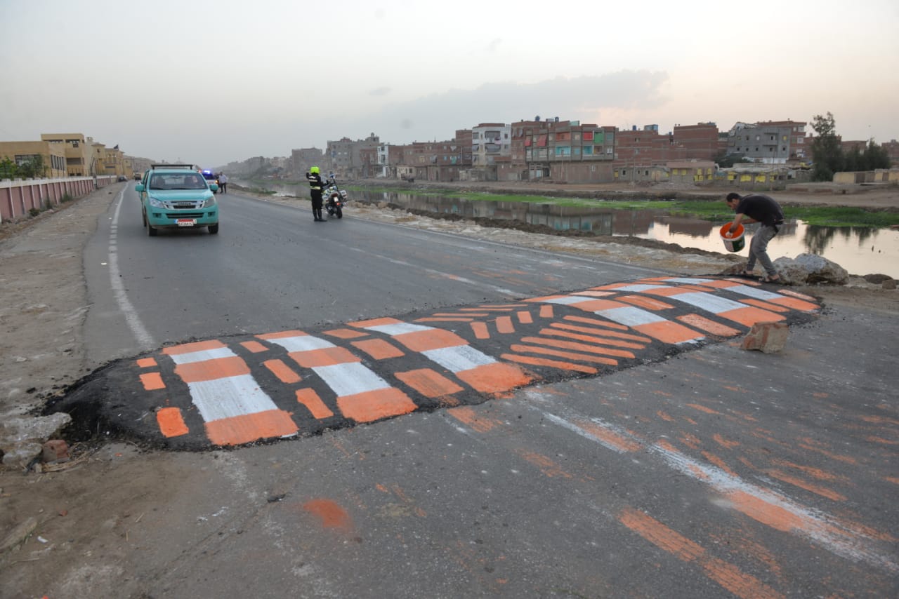 وتابع اللواء "مرزوق" أعمال وضع الكتل الخرسانية وإنشاء المطبات الصناعية على الطريق والمداخل الفرعية لمنع مرور سيارات النقل الثقيل بمراكز الجمالية والمنزلة والمطرية، منعًا لتكرار الحوادث مرة أخرى.