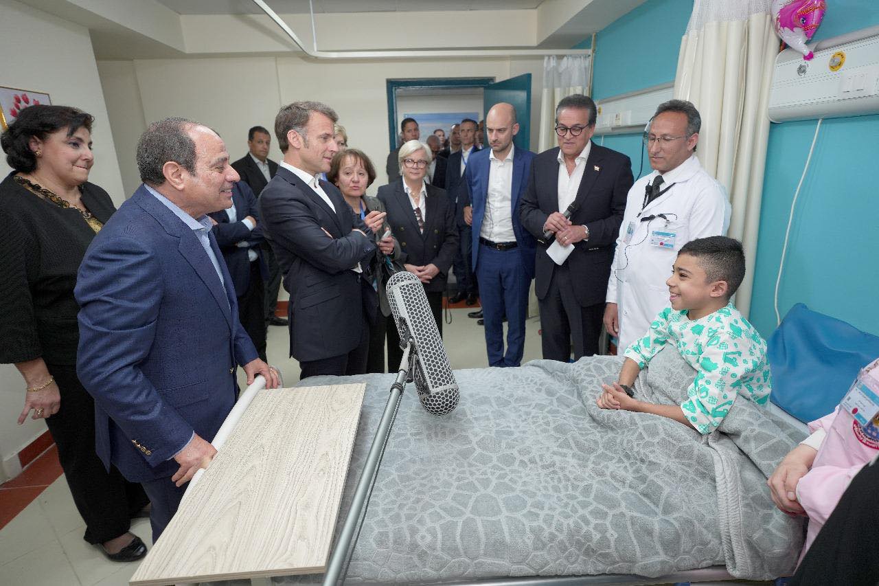 وصرّح السفير محمد الشناوي، المتحدث الرسمي باسم رئاسة الجمهورية، بأن هذه الزيارة تأتي لتأكيد تضامن فرنسا مع الجهود المصرية الكبيرة في استقبال ورعاية المصابين من أبناء الشعب الفلسطيني جراء العدوان الإسرائيلي الغاشم على قطاع غزة