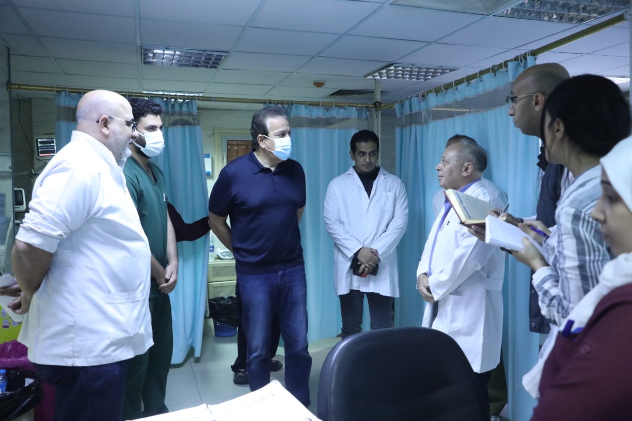 وقال الدكتور حسام عبدالغفار المتحدث الرسمي لوزارة الصحة والسكان، إن الوزير، اطلع على كشوفات سجل استقبال الطوارئ عن اليوم، واطمئن على حجم الإشغال ومعدل الترددات للمستشفى، ثم اتجه لتفقد وحدة الرعاية المركزة بقوة 10 أسرة، ويشغلها حاليا 9 حالات، حرص على تفقدهم والاطمئنان على حالتهم الصحية.
