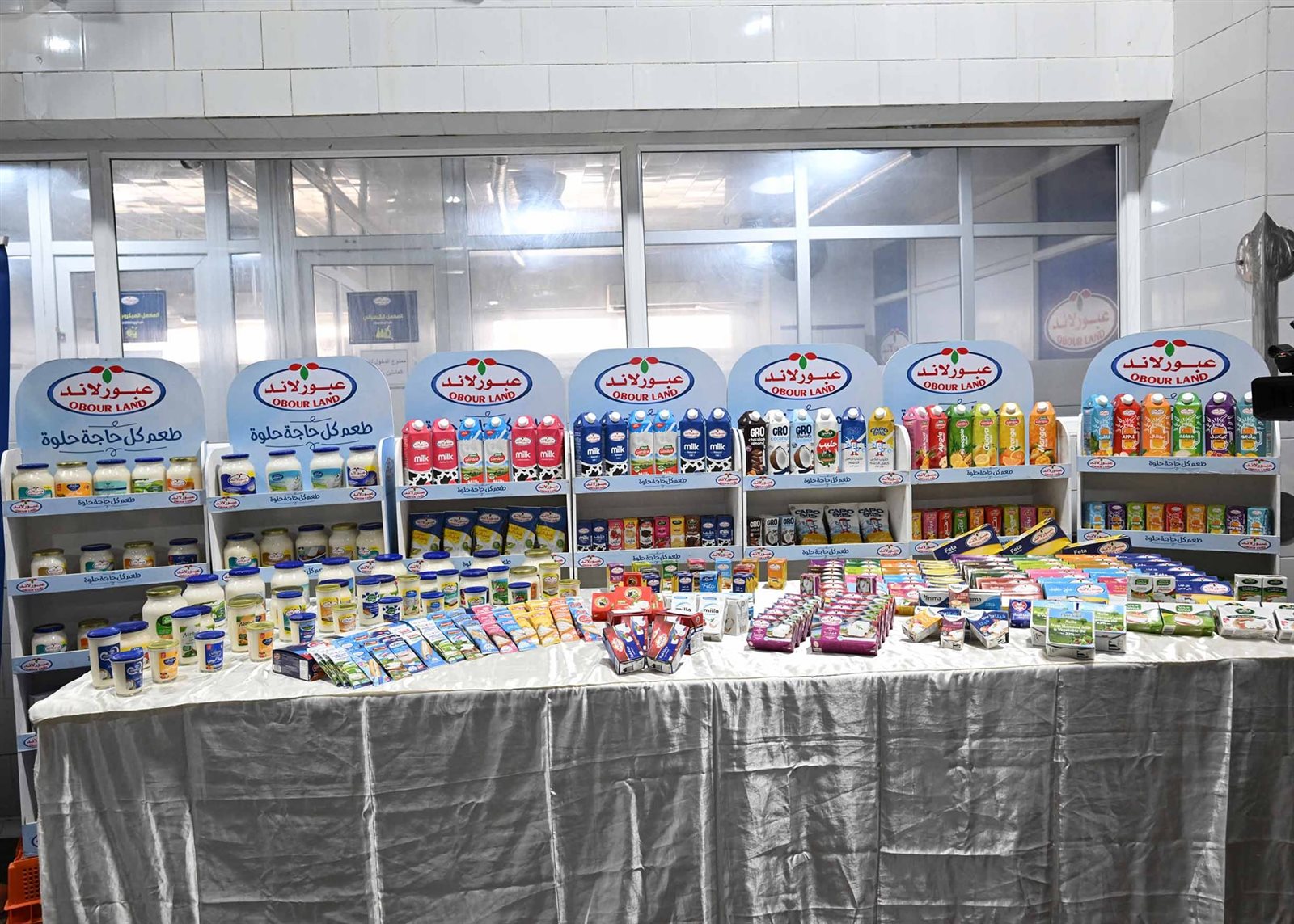 وأضاف أن شركة "عبور لاند" تُنتج مجموعة متنوعة من المنتجات المُتميزة مثل: اللبن المعقم بأحجام متنوعة سواء كان كامل الدسم أو خالي الدسم، بمعدل إنتاج 100 طن يومياً، إلى جانب منتجات الجبن الأبيض الطبيعي والنباتي بأحجام وأطعمة مُختلفة، وبمتوسط إنتاج 450 طنا يومياً، وبطاقة إنتاجية قصوى تبلغ 750 طنا يومياً، بالإضافة إلى إنتاج العصائر من مختلف أنواع الفواكه المُتوافرة بالسوق المصرية، بمُعدل إنتاج 60 طنا يومياً، منوهاً إلى أن مصنع الجبن المطبوخ الطبيعي والنباتي يُسهم في تغطية احتياجات السوق المحلية، ويتم تصدير الجزء الأكبر من الانتاج لدول الخليج العربي وبعض الدول الأخرى .