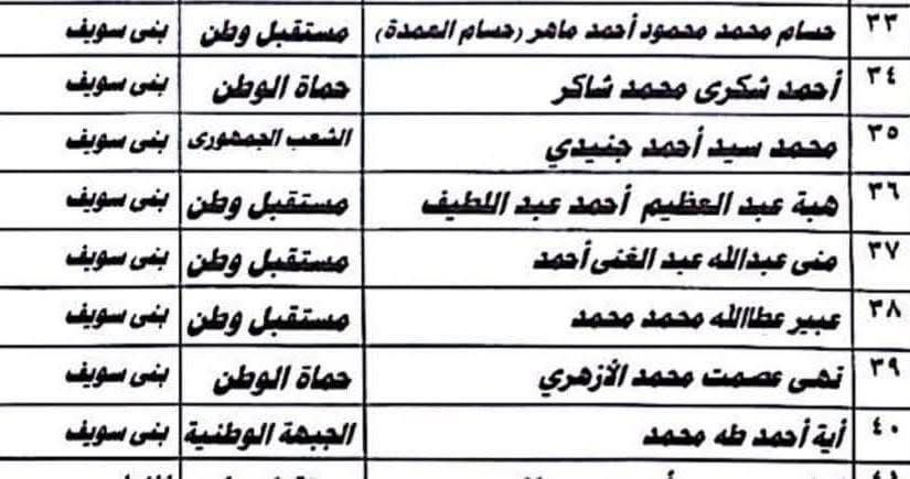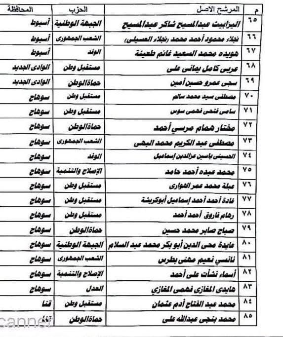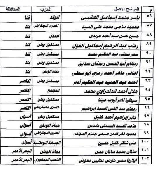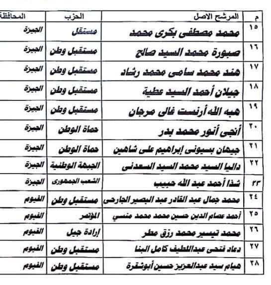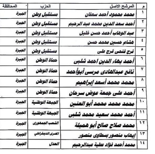 *قائمة الجيزة ووسط وجنوب الصعيد كما يلي :