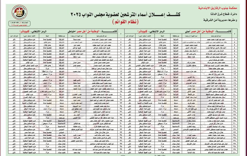 القائمة المترشحة بدائرة قطاع شرق الدلتا
