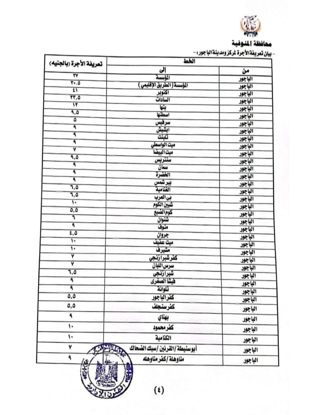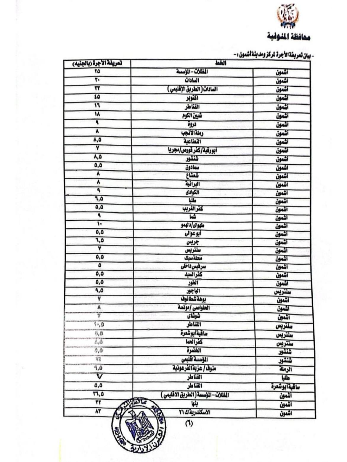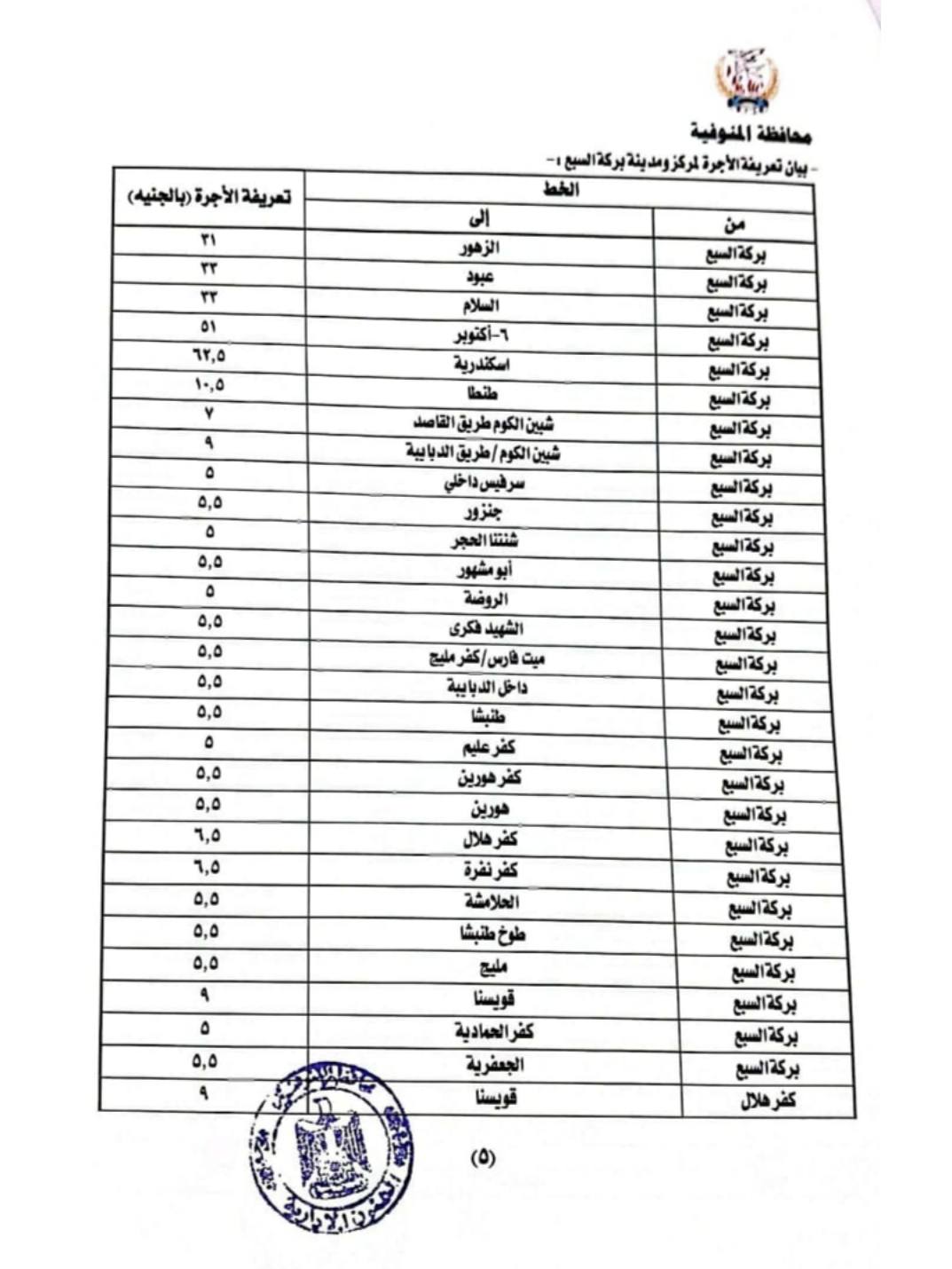 أسعار تعريفة الركوب الجديدة لسيارات الأجرة والتاكسي بالخطوط الداخلية والخارجية بمحافظة المنوفية