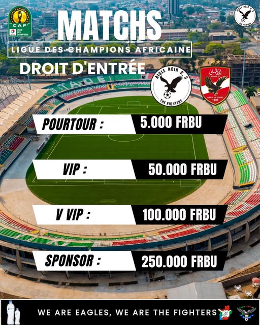 أما تذاكر الدرجة الممتازة فجاءت بسعر 50 ألف فرانك بوروندي، أي ما يعادل حوالي 800 جنيه مصري، في واحدة من أعلى الفئات السعرية في مباريات النادي خلال مشواره الإفريقي.