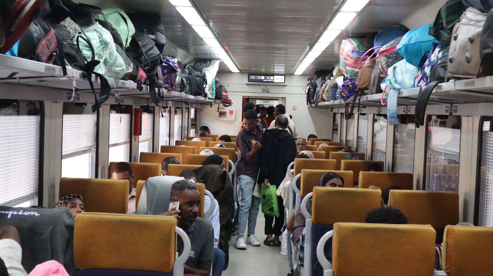 انطلقت، صباح اليوم السبت، رحلة القطار رقم (1940) من محطة مصر برمسيس وعلى متنها مئات الأسر السودانية، متجهين إلى محافظة أسوان، حيث من المقرر أن يصل في تمام الساعة 11:40 مساءً، على أن يعاود رحلته لخدمة جمهور الركاب من محطة أسوان في الساعة 11:30 من صباح اليوم التالي.