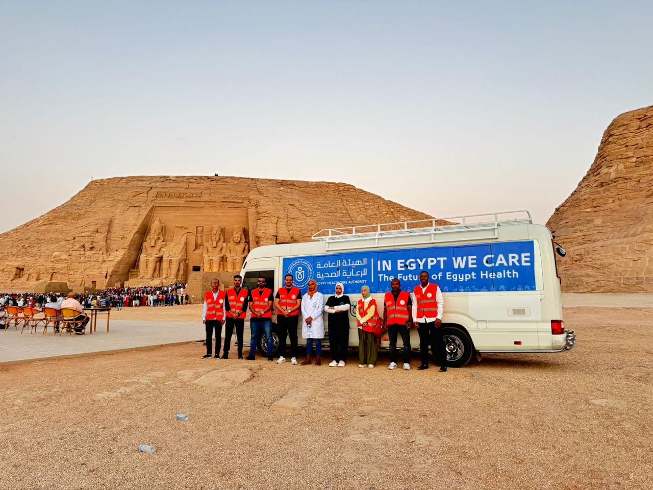 وأكد الدكتور أحمد السبكي أن خطة الهيئة لتأمين الفعاليات لا تقتصر على الجانب الطبي فقط، بل تمتد أيضًا لتشمل أنشطة توعوية وترفيهية للزائرين والمواطنين خلال احتفالات تعامد الشمس، إلى جانب الترويج لمشروع الهيئة للسياحة العلاجية تخت مظلة العلامة التجارية "نرعاك في مصر"، التي تعكس مكانة مصر كوجهة متميزة للعلاج والسياحة الصحية في الشرق الأوسط وأفريقيا.