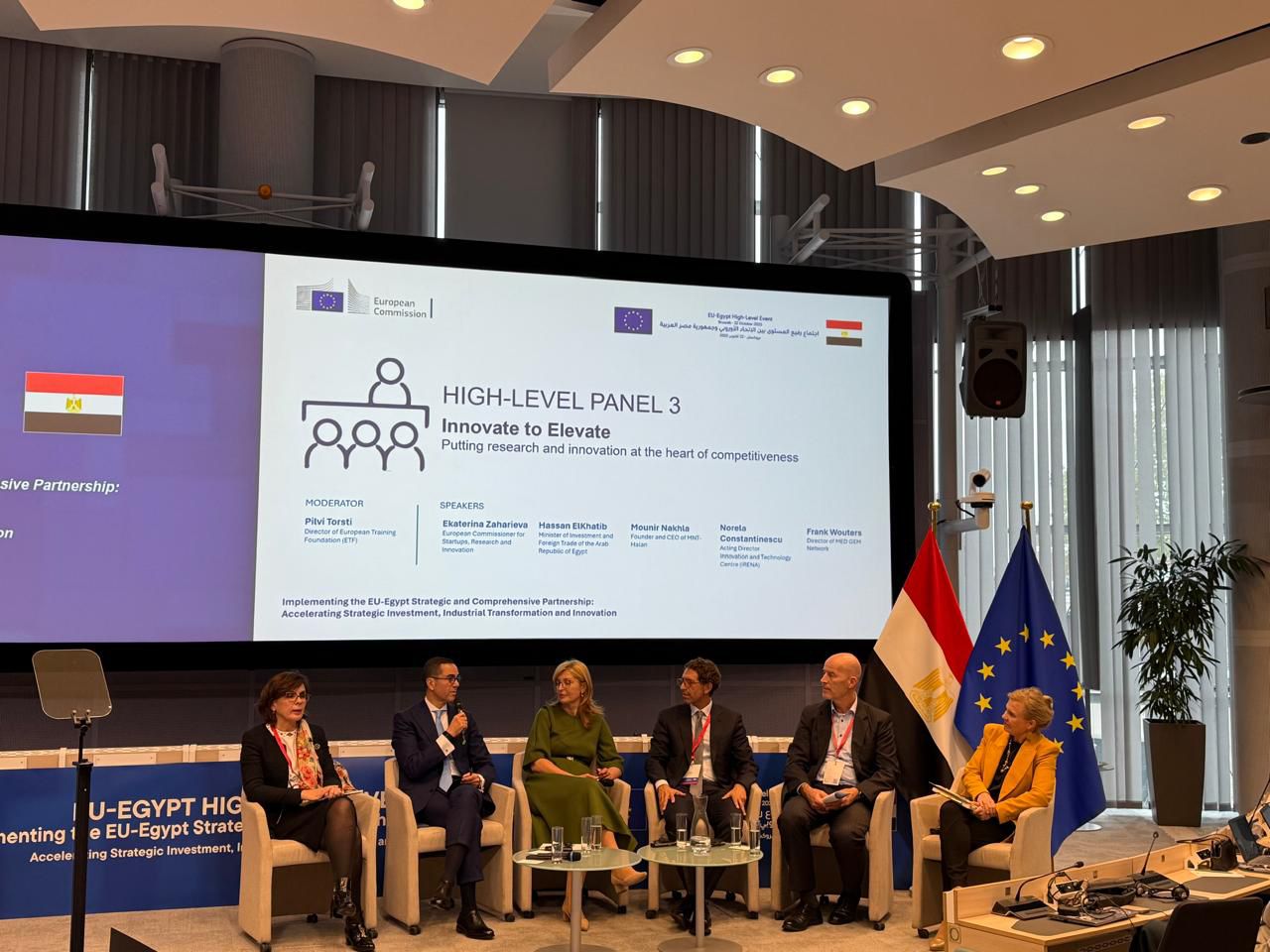 شارك المهندس حسن الخطيب، وزير الاستثمار والتجارة الخارجية في الجلسة الرفيعة المستوى بعنوان "ابتكر لترتقي: وضع البحث والابتكار في قلب القدرة التنافسية"، وأدارت الجلسة بيلفي تورستي، مديرة المؤسسة الأوروبية للتدريب، وبحضور إيكاترينا زاهاريفا، المفوضة الأوروبية لشؤون الشركات الناشئة والبحث والابتكار، منير نخلة، مؤسس والرئيس التنفيذي MNT-Halan، نورِيلا كونستانتينسكو، القائم بأعمال مدير مركز الابتكار والتكنولوجيا بالوكالة الدولية للطاقة المتجددة (IRENA)، وفرانك ووترز، مدير شبكة EU MED-GEM الممولة من الاتحاد الأوروبي، وذلك في إطار فعاليات القمة المصرية الأوروبية ببروكسل حول تعزيز القدرة التنافسية والابتكار الصناعي.