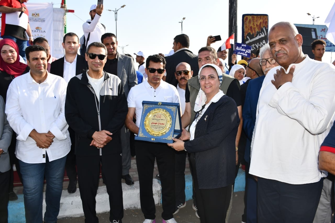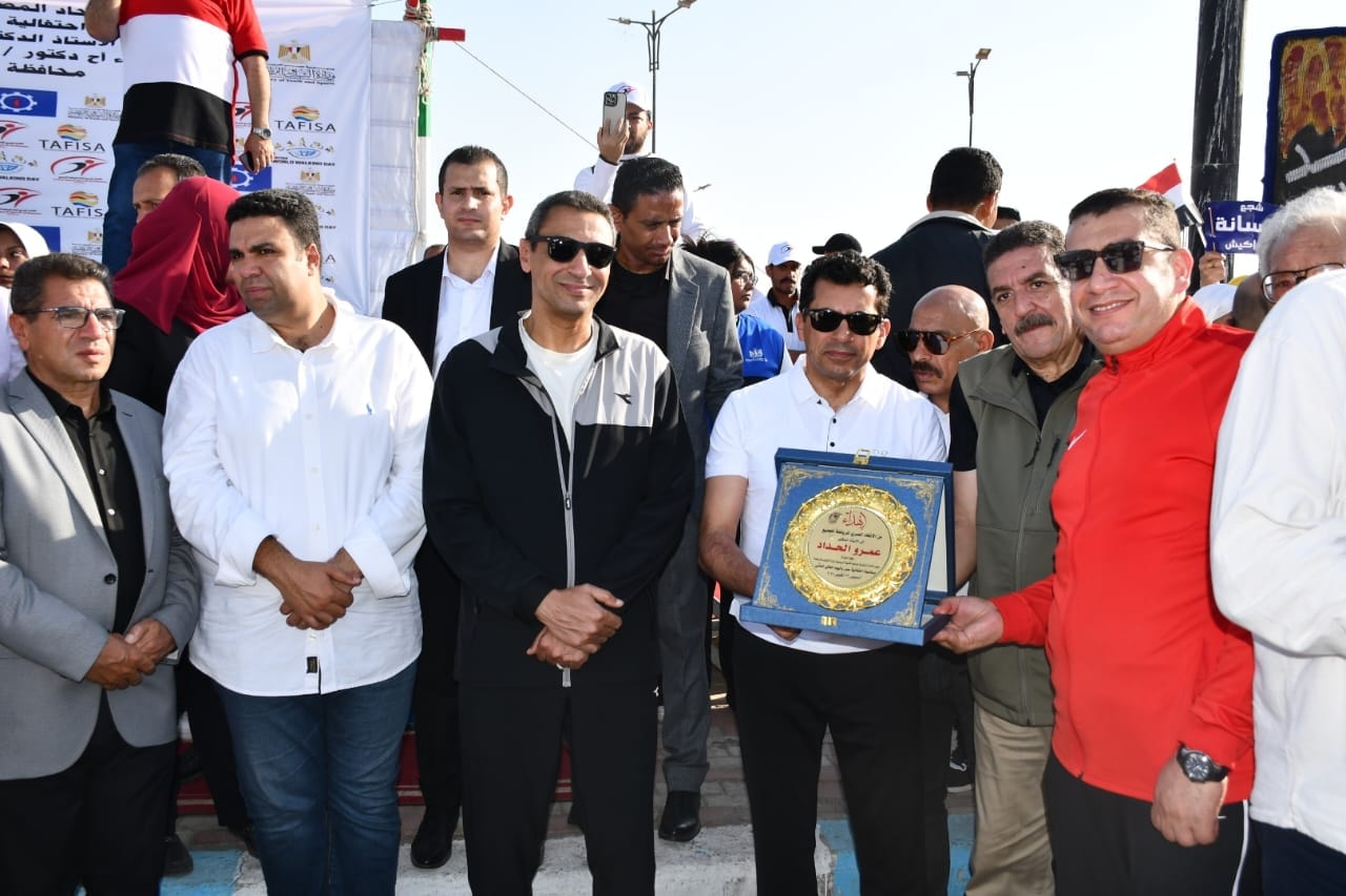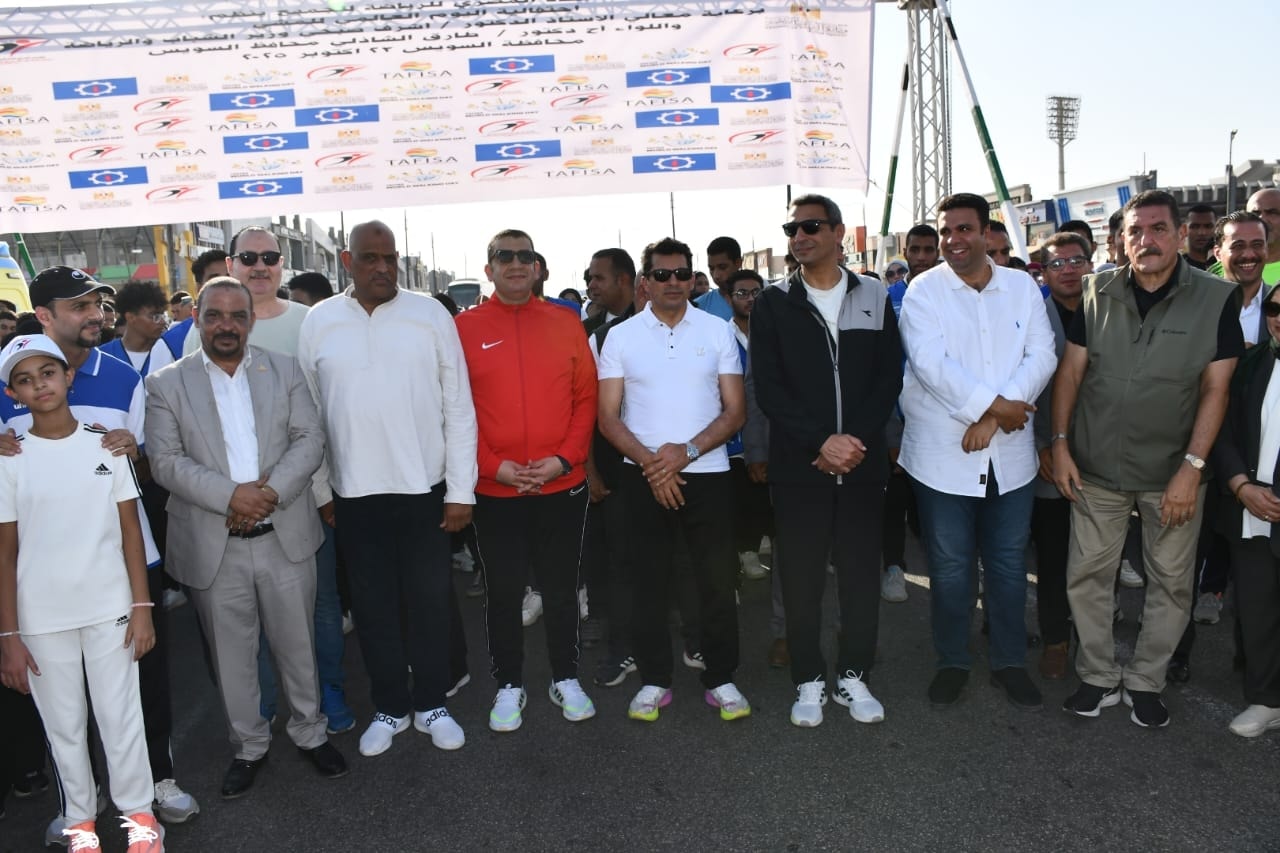 وزير الشباب والرياضة ومحافظ السويس يفتتحان مسيرة مهرجان يوم المشي العالمي