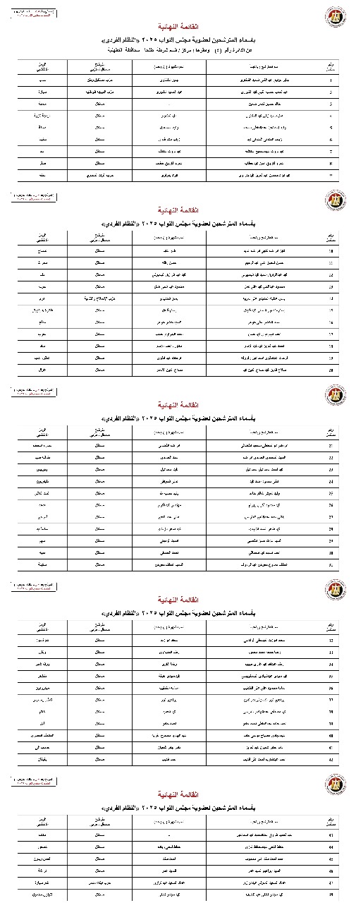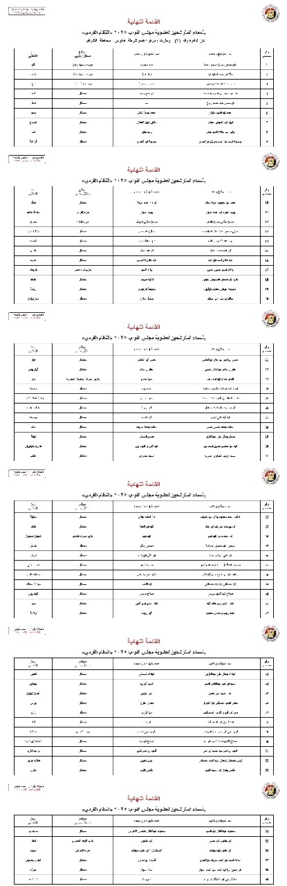القائمة النهائية لمرشحي دوائر محافظة الغربية عن النظام الفردي