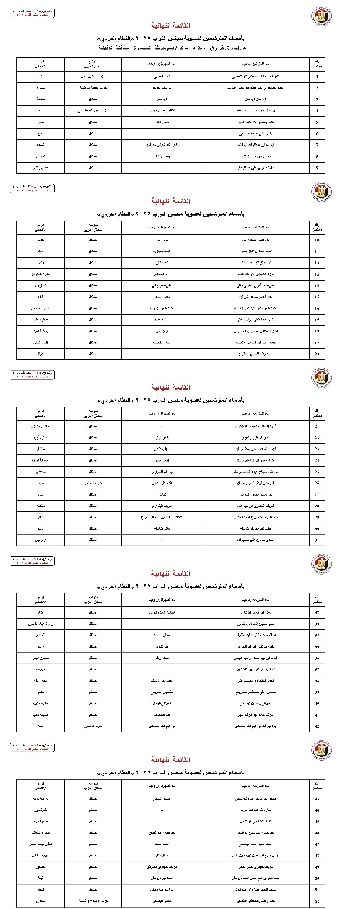القائمة النهائية لمترشحي دوائر محافظة البحيرة عن النظام الفردي