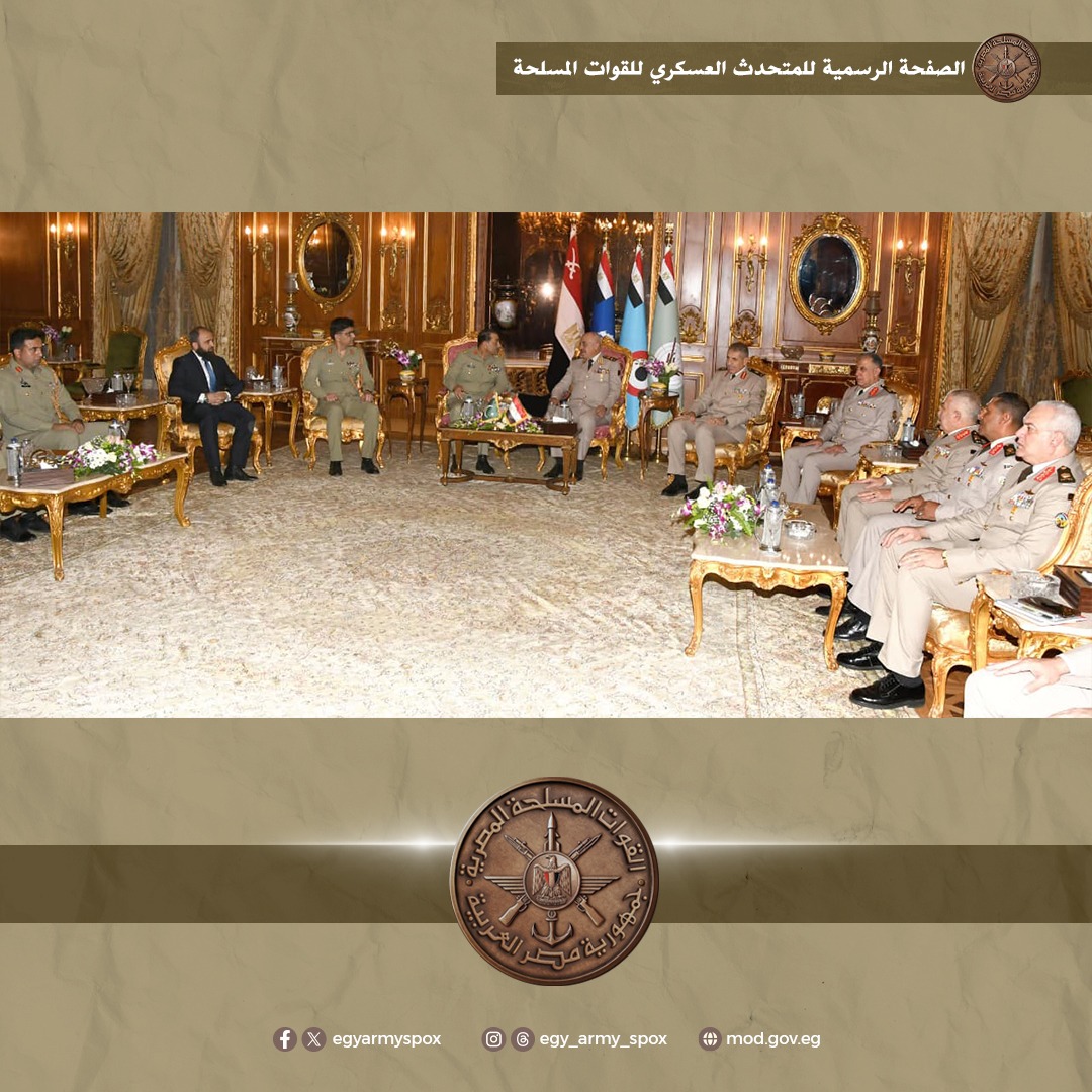 التقى الفريق أول عبدالمجيد صقر، القائد العام للقوات المسلحة وزير الدفاع والإنتاج الحربي، المشير عاصم منير، رئيس أركان القوات البرية الباكستانية، والوفد المرافق له الذي يزور مصر.