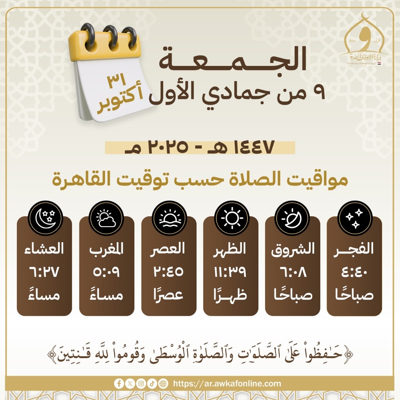 ارتفعت معدلات البحث عن مواقيت الصلاة اليوم بعد تغيير الساعة وتطبيق التوقيت الشتوي 2025، وذلك لمعرفة مواقيت صلاة الجمعة اليوم 31 أكتوبر 2025.