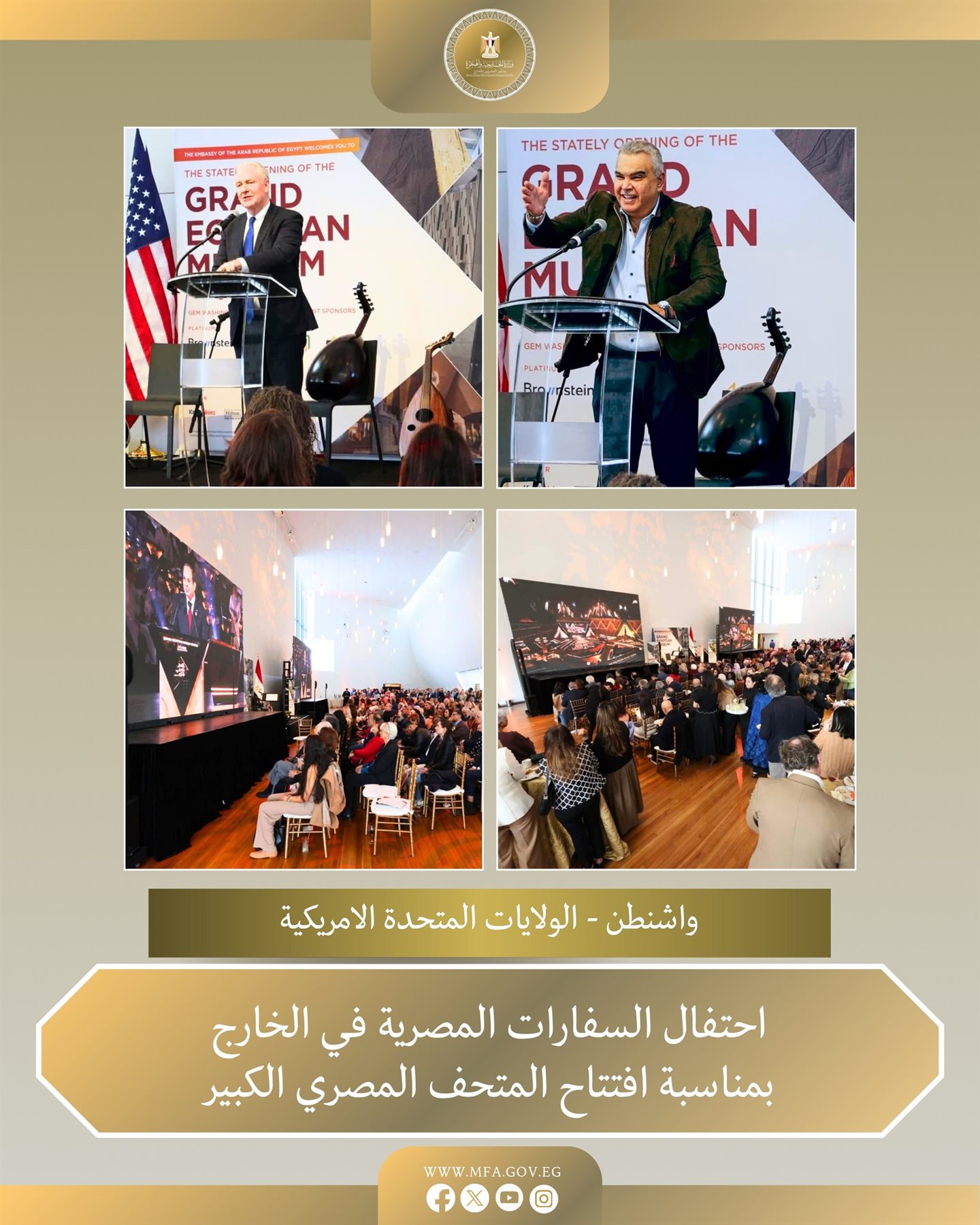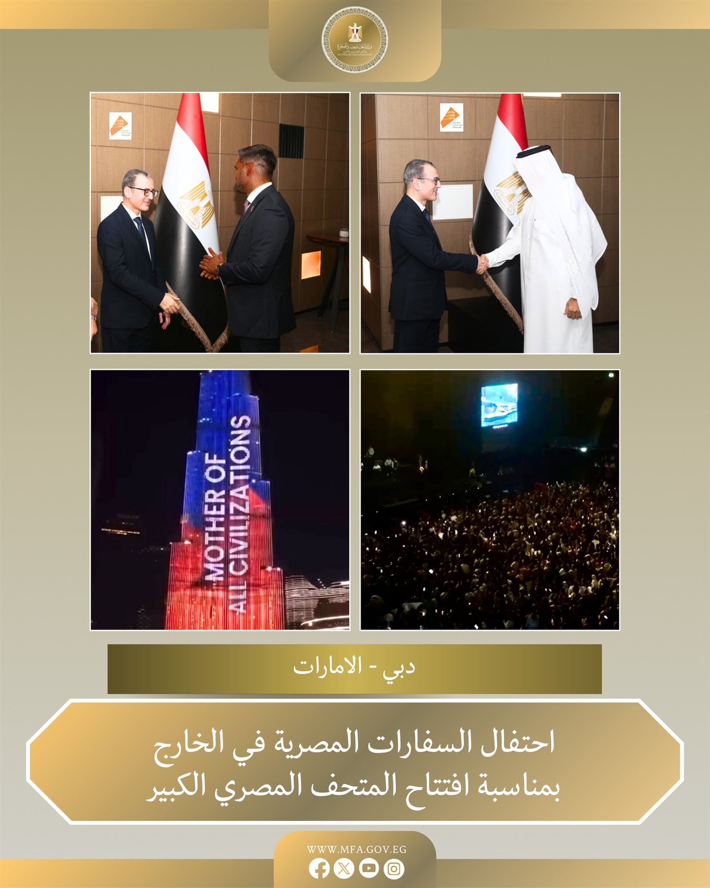 نظمت البعثات المصرية في الخارج مساء أمس فاعليات مكثفة تزامنًا مع الافتتاح التاريخي المهيب للمتحف المصري الكبير، فى تجسيد لعالمية الحدث ومكانة مصر الحضارية والتاريخية الفريدة.