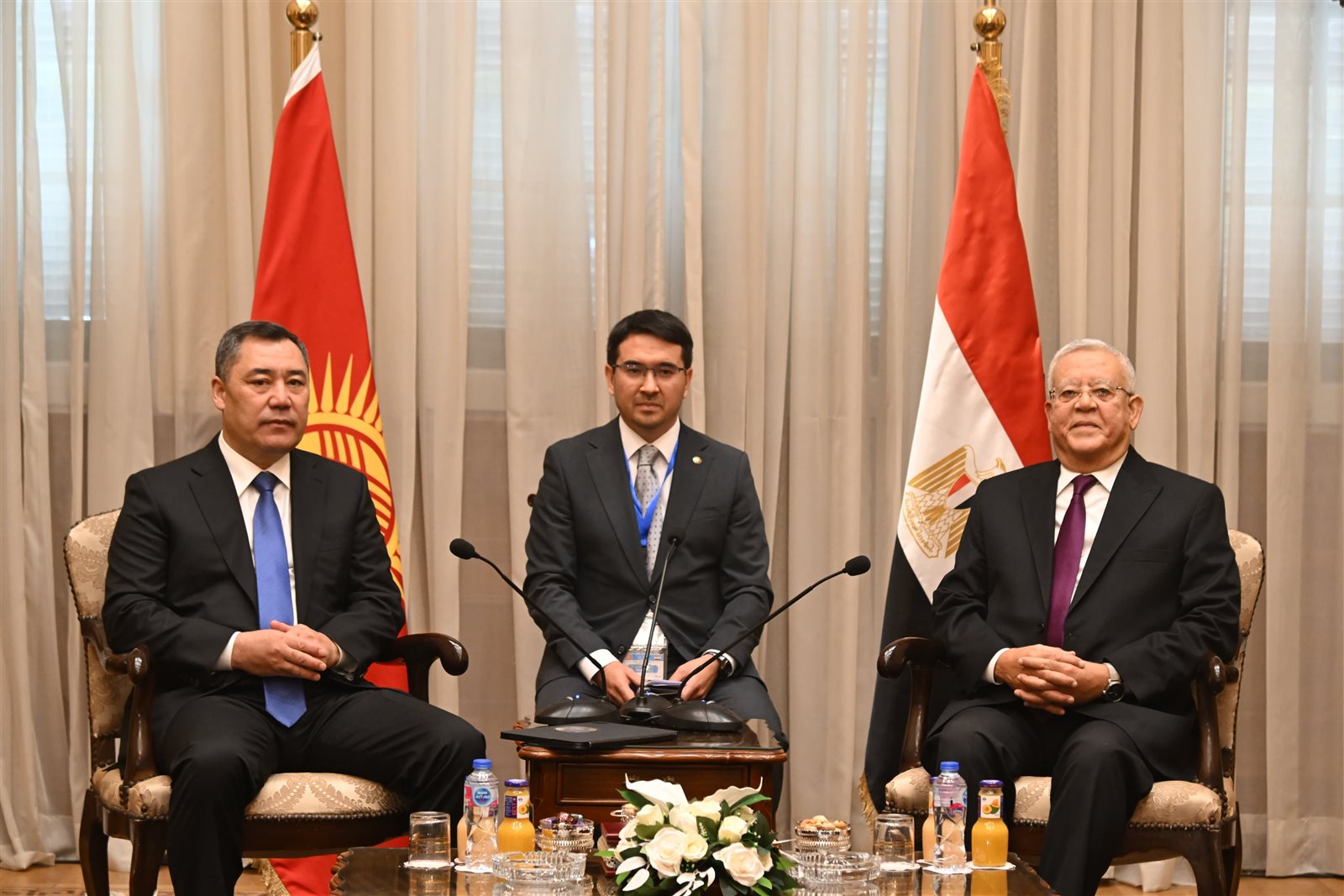 من جانبه، أكد السيد رئيس جمهورية قيرغيزستان على بالغ اعتزازه بزيارة مصر بوصفها دولة عظيمة وشقيقة وبوابة القارة الأفريقية، وقدم رئيس الجمهورية القيرغيزي التهنئة على افتتاح المُتحف المصري الكبير والذي أكد فخر بلاده به كونه أكبر متحف في العالم، كما أبدى رئيس جمهورية قيرغيزستان اتفاقه على ضرورة تطوير العلاقات الثنائية في كافة المجالات بالنظر إلى الآفاق الواعدة للتعاون بين البلدين، مؤكدًا على ضرورة تعزيز العلاقات البرلمانية بإنشاء جمعية للصداقة البرلمانية بين البلدين.