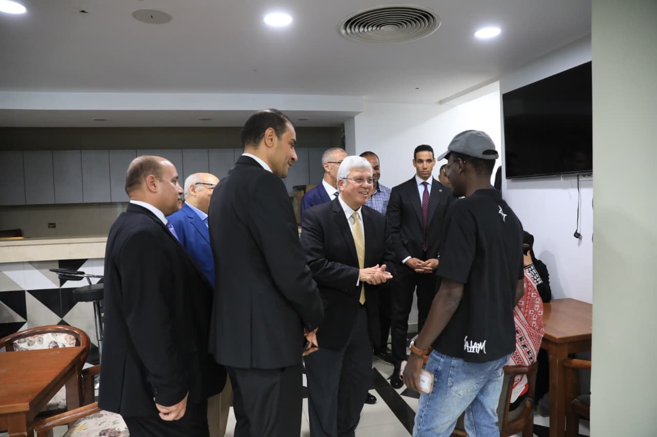 وشملت الجولة زيارة نادي الطلاب الوافدين التابع للوزارة، حيث التقى وزير التعليم العالي بعدد من الطلاب الوافدين من مختلف الدول، واستمع إلى آرائهم ومقترحاتهم لتطوير الخدمات التعليمية والاجتماعية المقدمة لهم، مؤكدًا أن الوزارة تولي اهتمامًا خاصًا برعاية الطلاب الوافدين، وتعزيز تجربتهم التعليمية والثقافية في مصر.