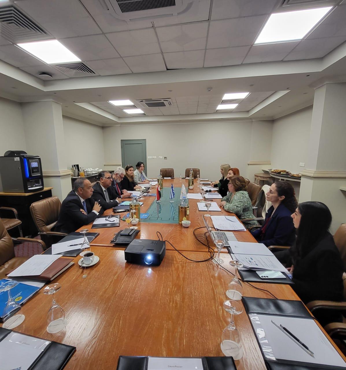 أكد نائب الوزير على الروابط التاريخية والثقافية التي تجمع بين شعوب مصر وقبرص واليونان، مثمناً القوة التي تتصف بها العلاقات الثلاثية بين الدول الثلاث وتطورها بشكل إيجابي على مختلف الأصعدة، كما أكد على مواصلة الدولة المصرية مساعيها نحو إحياء الروابط الاجتماعية والتاريخية للشتات مع كل من قبرص واليونان، وذلك من خلال تنظيم الفعاليات المشتركة والزيارات الجماعية، مشيراً إلى عزمه العمل، جنباً إلى جنب مع المسئولين في كل من قبرص واليونان، على تعزيز وتوسيع هذا المجال من التعاون المرتبط بشكل مباشر بملف الدبلوماسية العامة، حيث يأتي هذا الاجتماع في سياق الجهود التي تقوم بها مصر لتنشيط مبادرة "إحياء الجذور" (نوستوس)، والتي تم تدشينها منذ عدةً سنوات وفقاً لرؤية السيد رئيس الجمهورية، لاسيما في ضوء هدفها النبيل المتمثل في زرع بذور التعاون والارتباط بمصر بين الجيلين الثاني والثالث من أبناء وأحفاد الجاليات التي كانت تعيش في كل من مصر وقبرص واليونان.