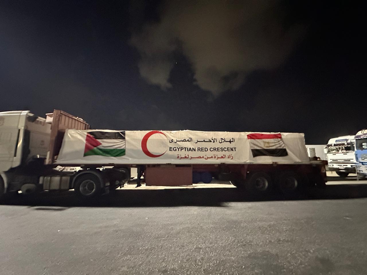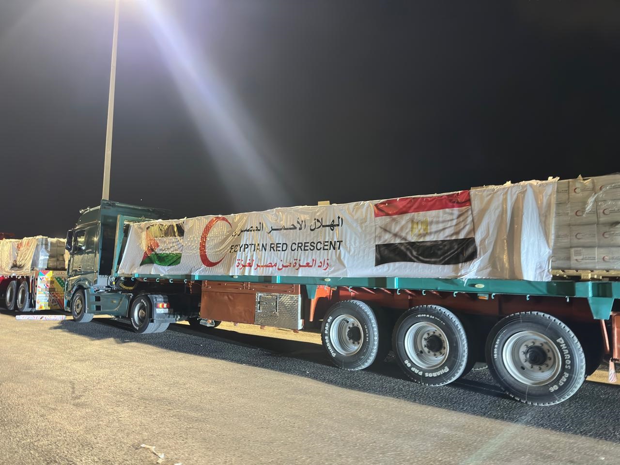 الهلال الأحمر المصري: قافلة «زاد العزة» الـ72 تضم 235 ألف سلة غذائية ومستلزمات طبية