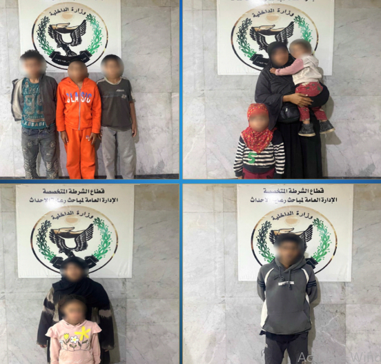 وتم اتخاذ الإجراءات القانونية وتسليم المجنى عليهم لأهليتهم وأخذ التعهد اللازم عليهم بحسن رعايتهم والتنسيق مع الجهات المعنية لاتخاذ الإجراءات اللازمة نحو إيداع من تعذر الوصول لأهليته لإحدى دور الرعاية.