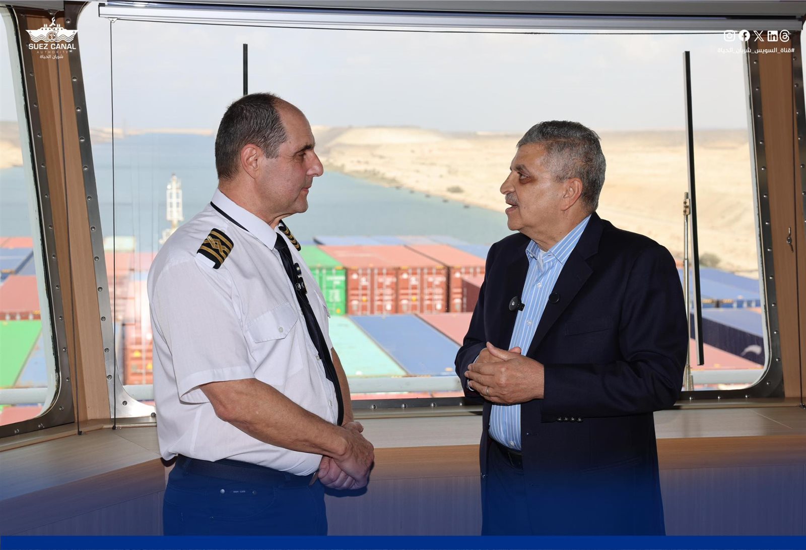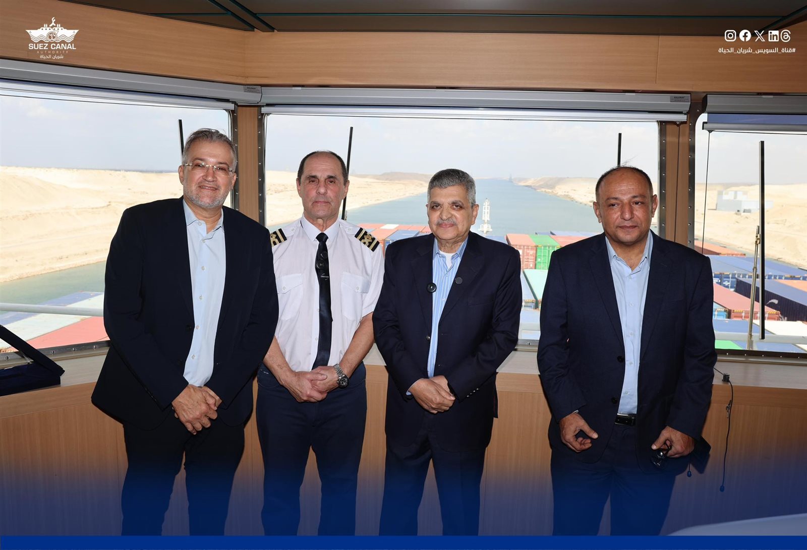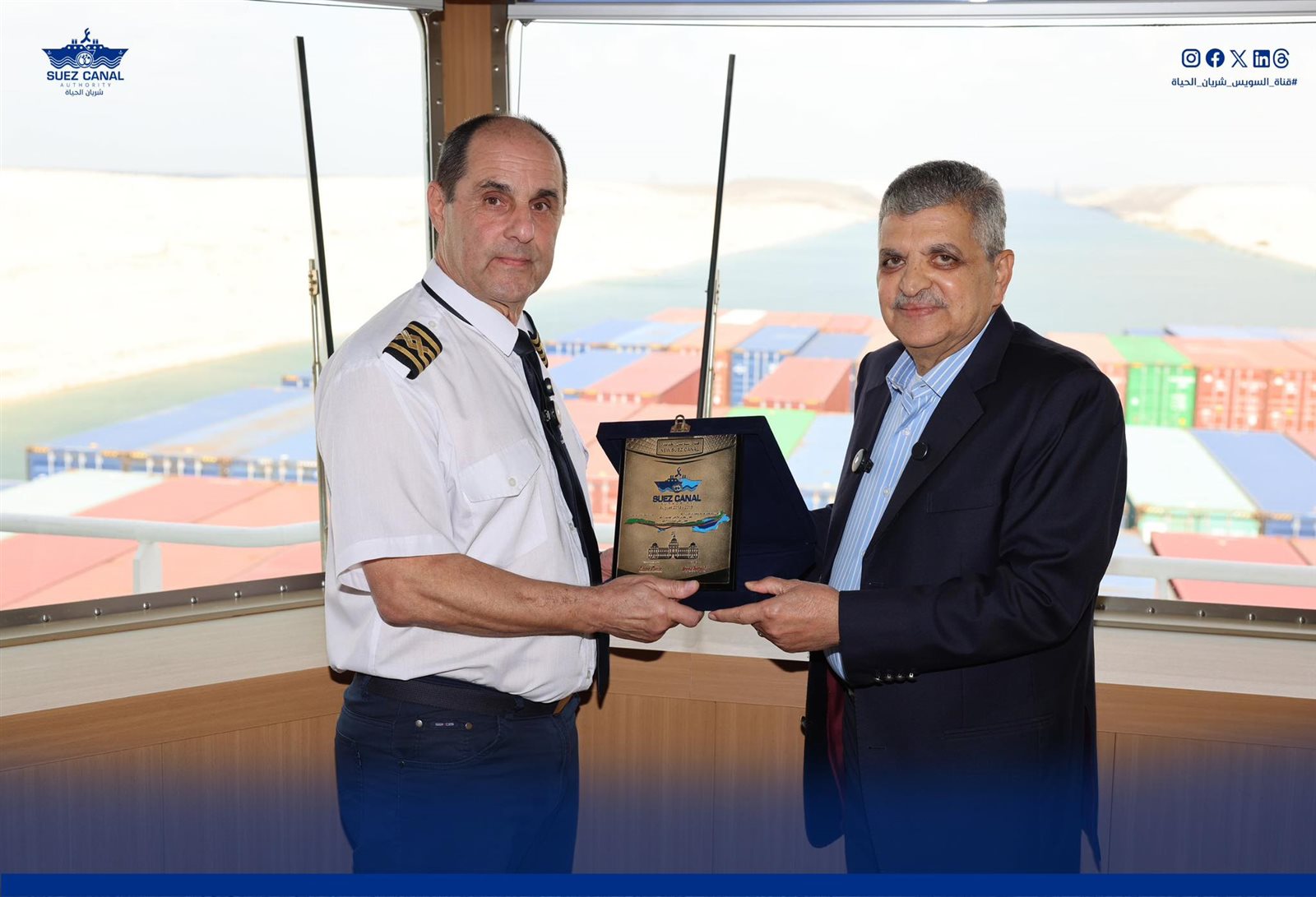 وخلال تواجده على متن السفينة، حرص رئيس الهيئة على الترحيب بطاقم السفينة والتعرف على انطباعاتهم عن العبور بمنطقة البحر الأحمر وباب المندب، و مستوى الخدمات الملاحية المُقدمة من القناة، حيث كان في استقباله السيد طارق زغلول الرئيس التنفيذي لمجموعة CMA CGM في مصر والسودان والسيد عمرو الشافعي مدير قطاع العمليات بالشركة.