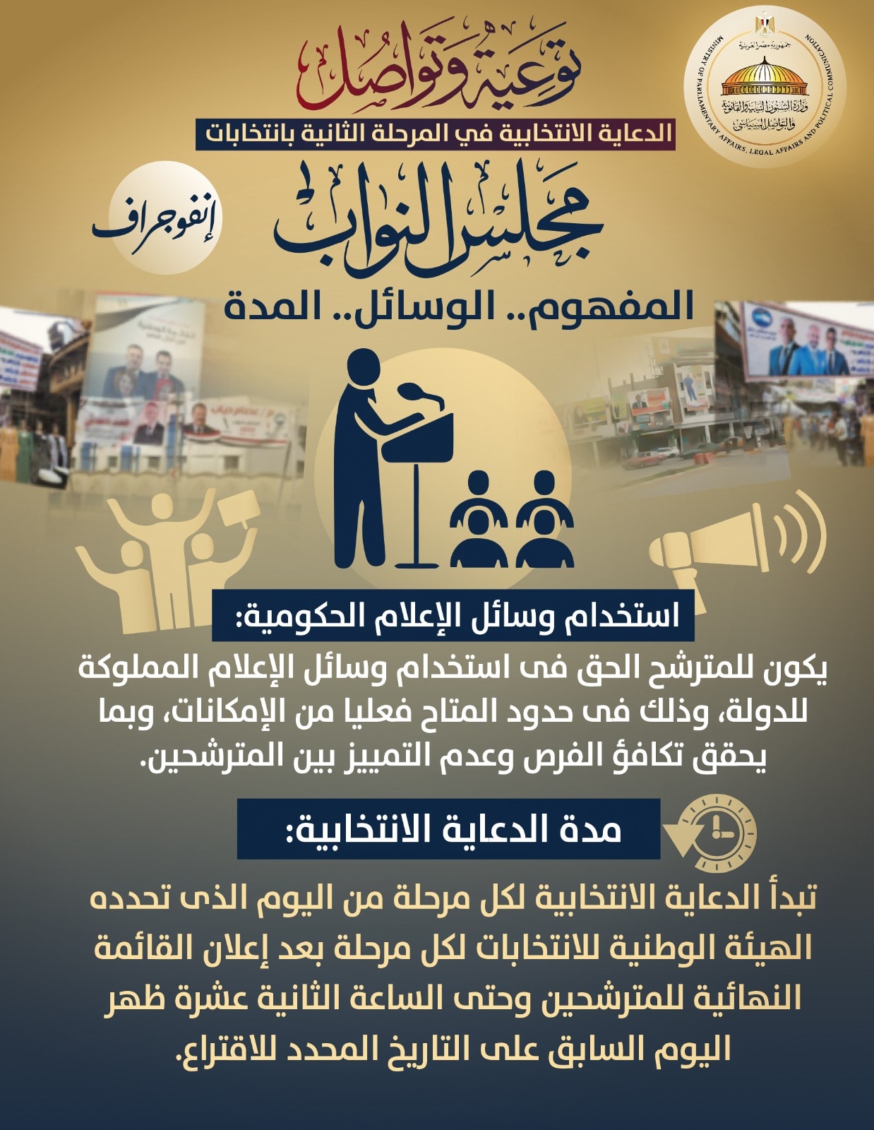 وقدمت وزارة الشؤون النيابية معلومات هامة عن الدعاية الانتخابية في المرحلة الثانية من انتخابات مجلس النواب.