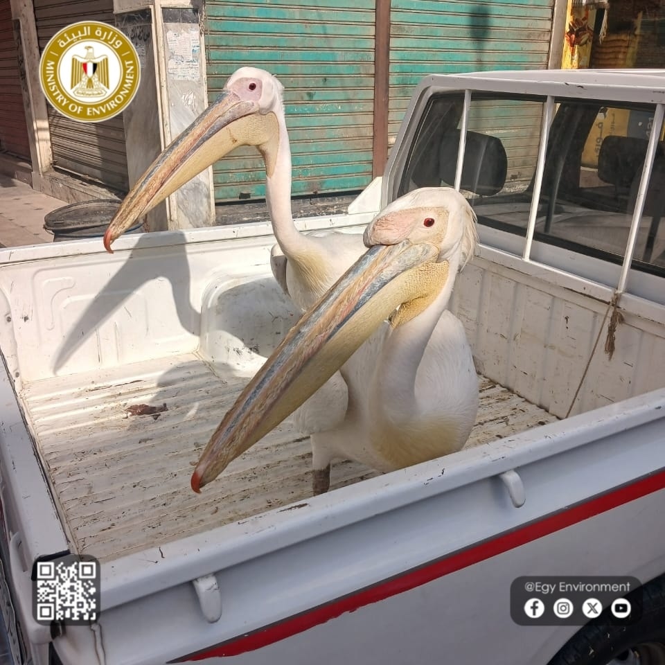 حملة عاجلة لـ«البيئة» لضبط ومصادرة طيور البجع المخالِفة بطريق السخنة.. صور