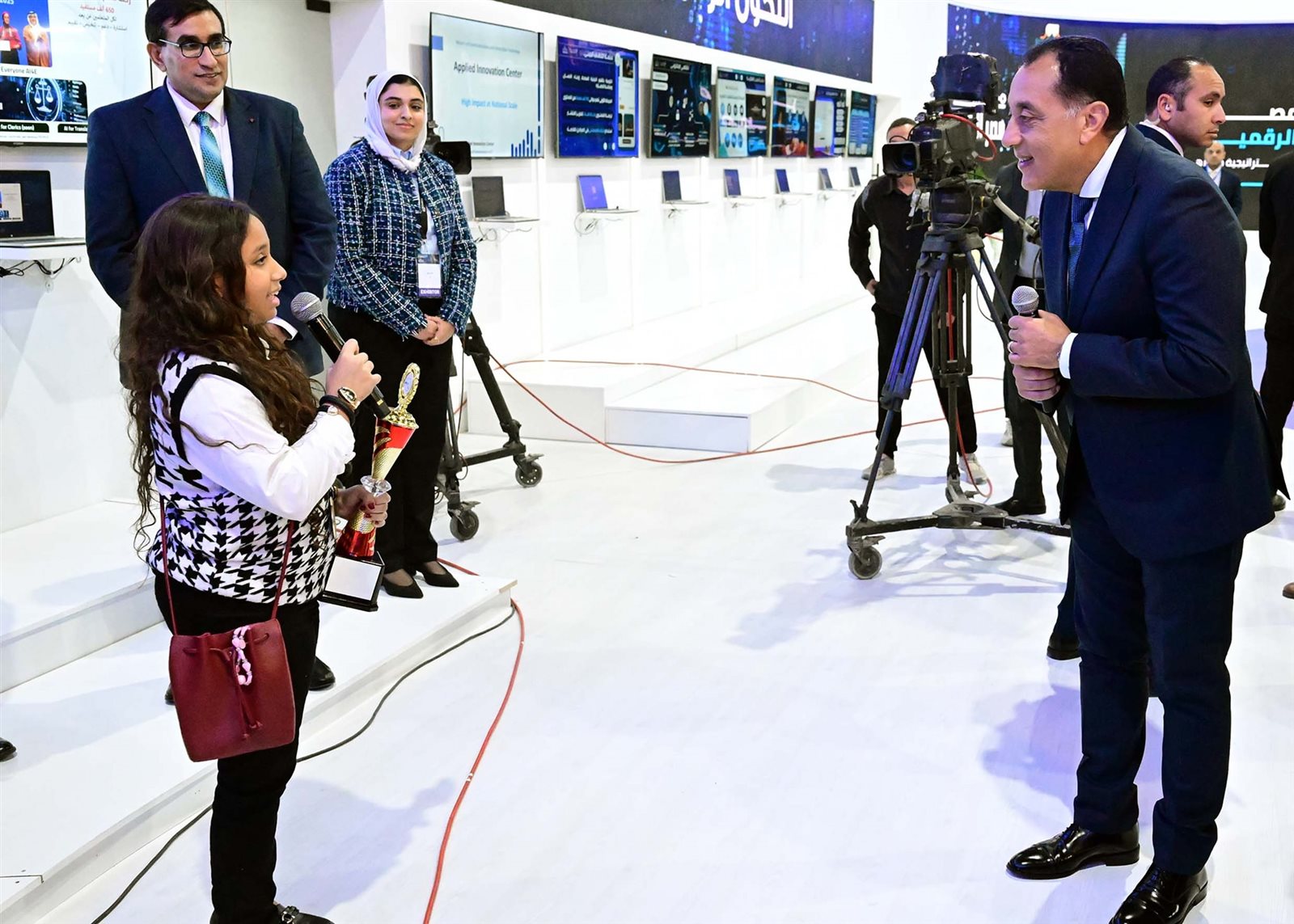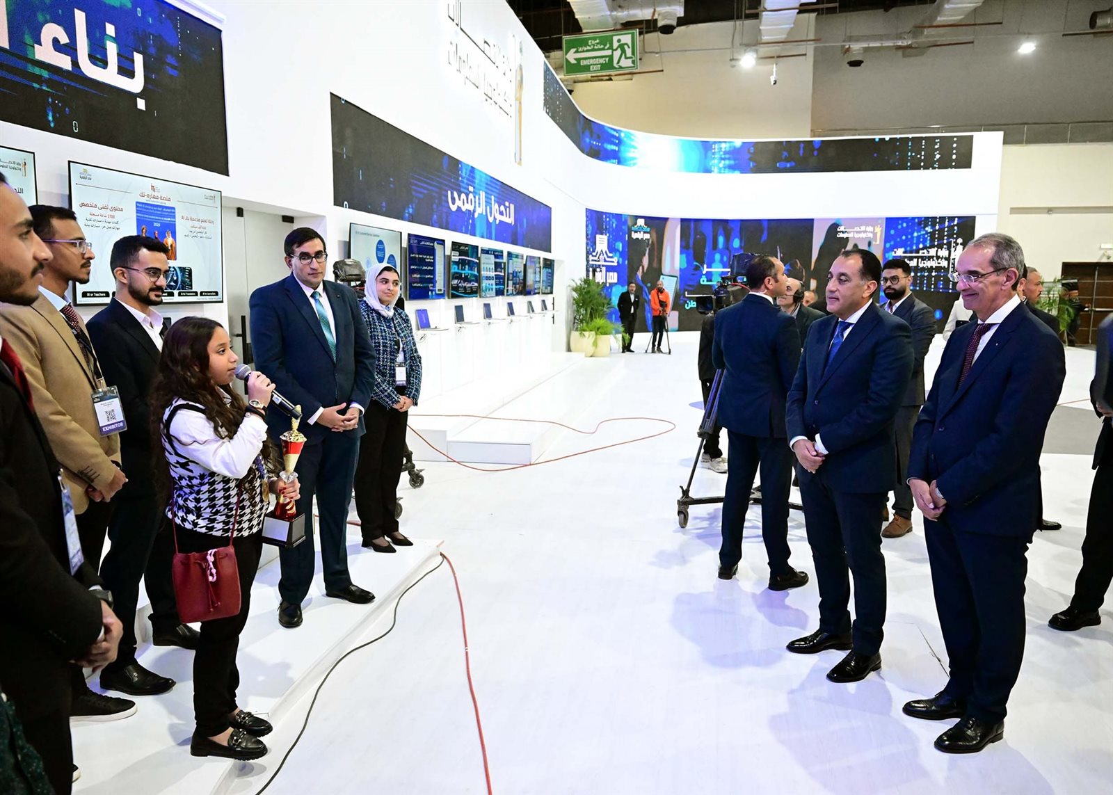 استمع الدكتور مصطفى مدبولي، رئيس مجلس الوزراء، خلال جولته في معرض ومؤتمر القاهرة الدولي للتكنولوجيا بالشرق الأوسط وأفريقيا Cairo ICT، لتجربة طفلة مصرية صغيرة مشاركة في المعرض حول قصة نجاحها باستخدام تقنية الذكاء الاصطناعي.